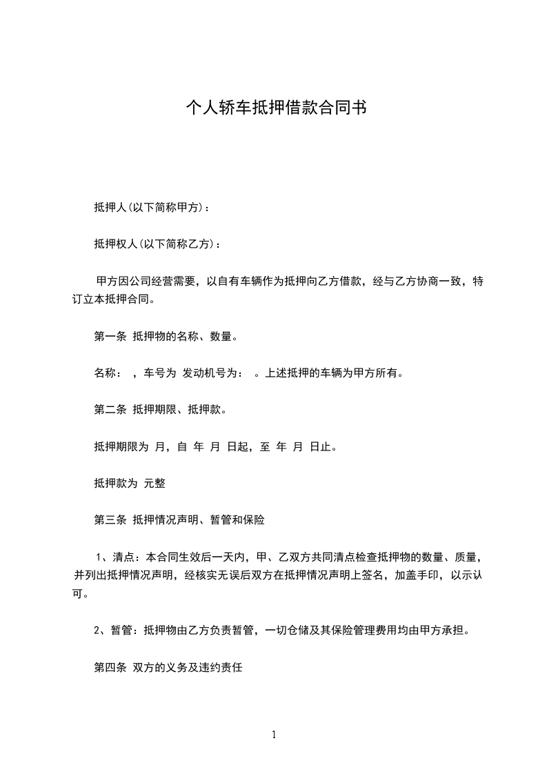 甲方因公司经营需要,以自有车辆作为抵押向乙方借款,经与乙方协商一致,特订立本抵押合同。