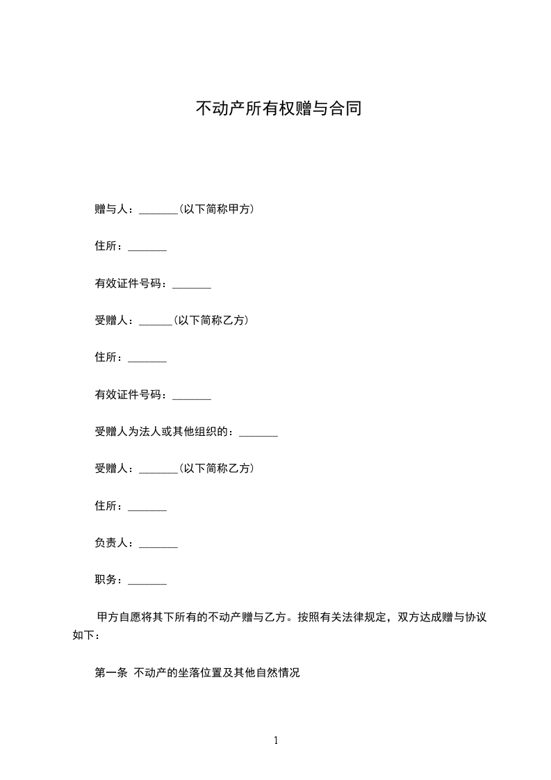 赠与人:(以下简称甲方) 住所: 有效证件号码: