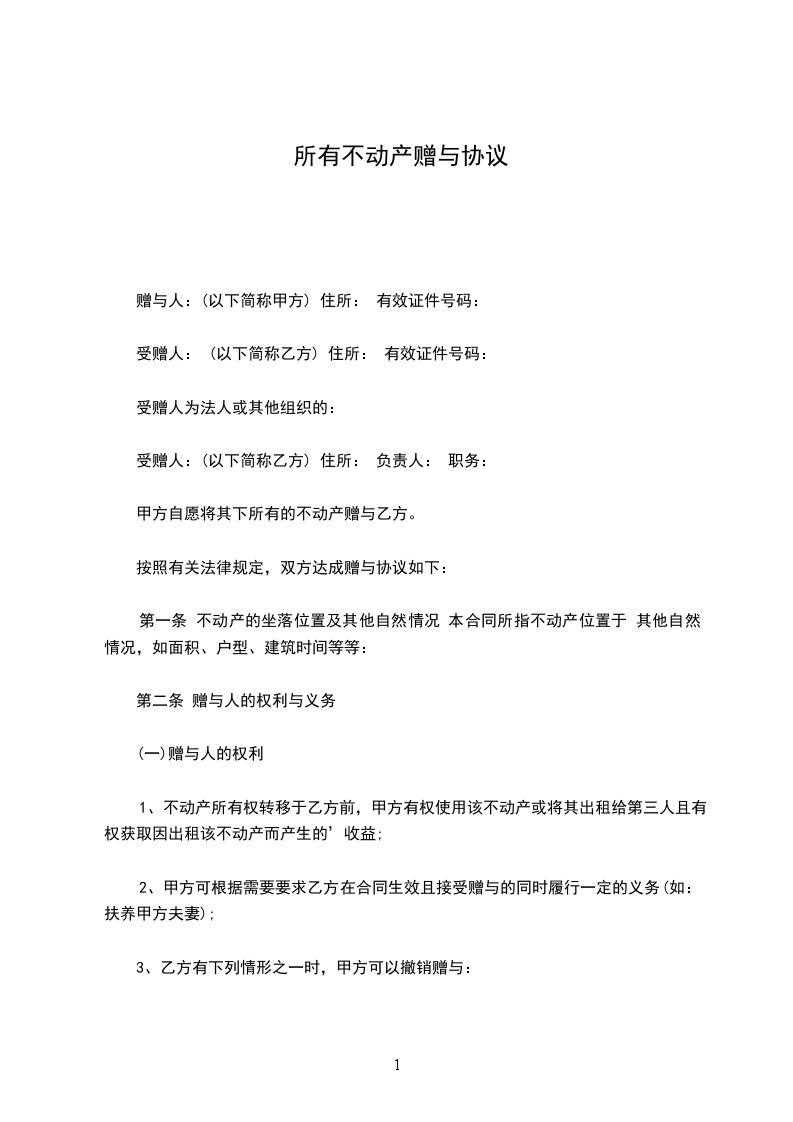 甲方自愿将其下所有的不动产赠与乙方。