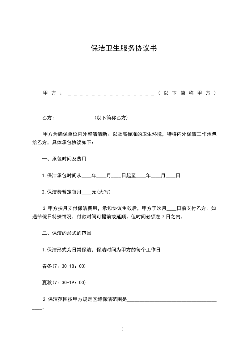 1.保洁承包时间从____年____月____日起至____年____月____日