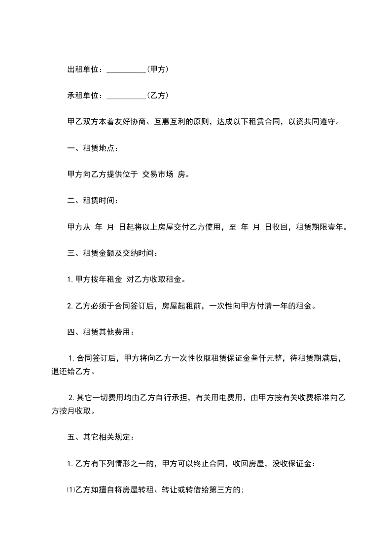 甲方向乙方提供位于 交易市场 房。