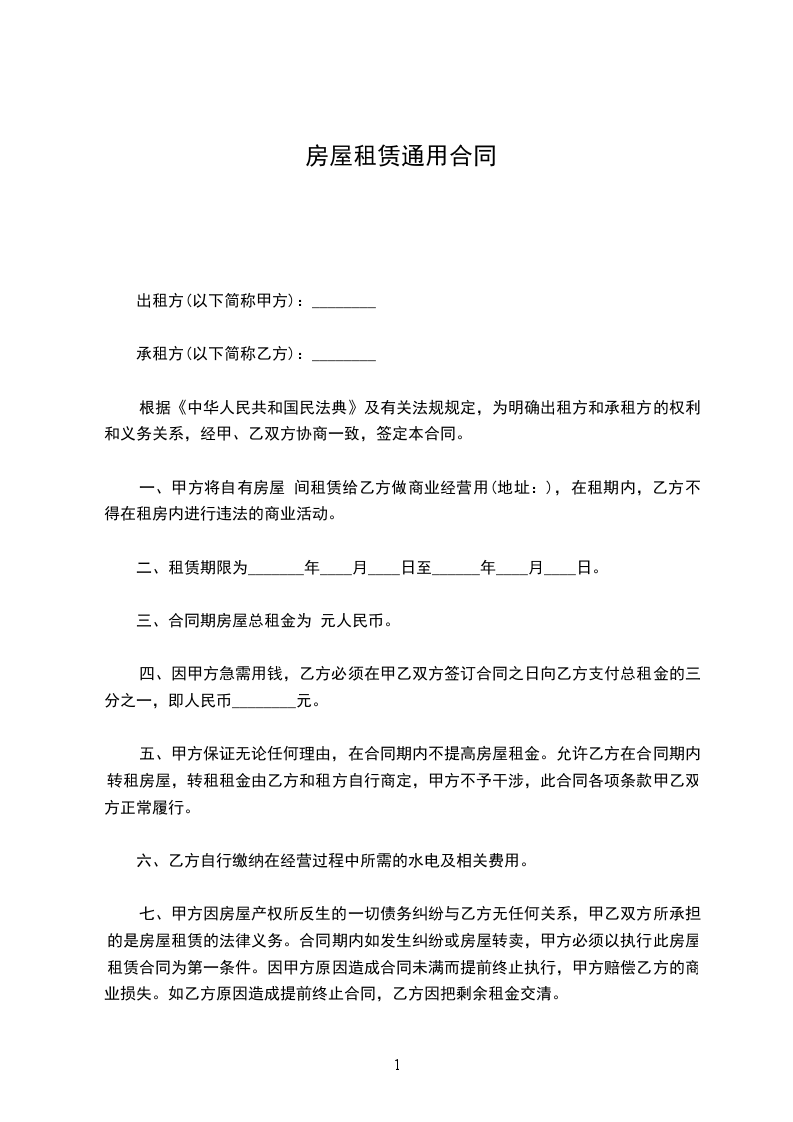 承租方(乙方):__________