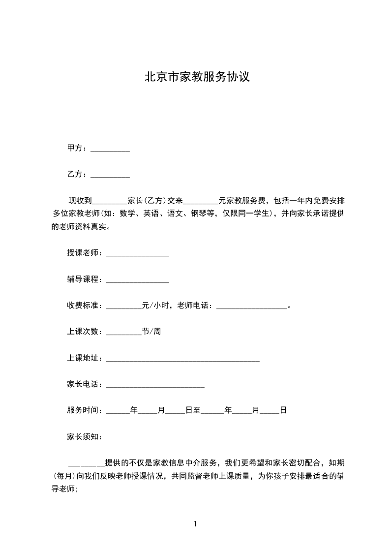 (1) 每天上午8时(北京时间)至晚8时(北京时间)为甲方服务时间,(中午饭后可休息1小时)乙方不在甲方居住;