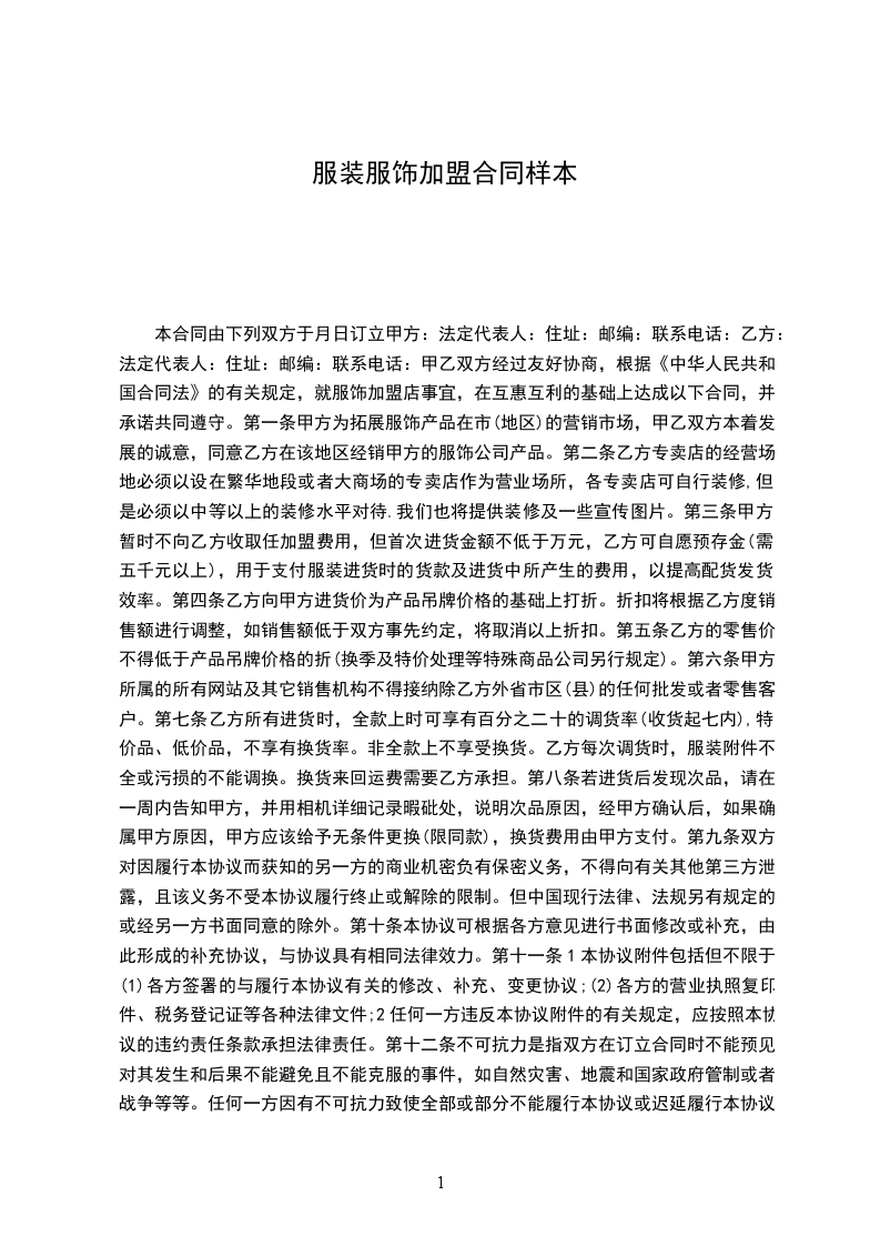 3、未经甲方许可,乙方不得留存服装样品及相关的技术资料。