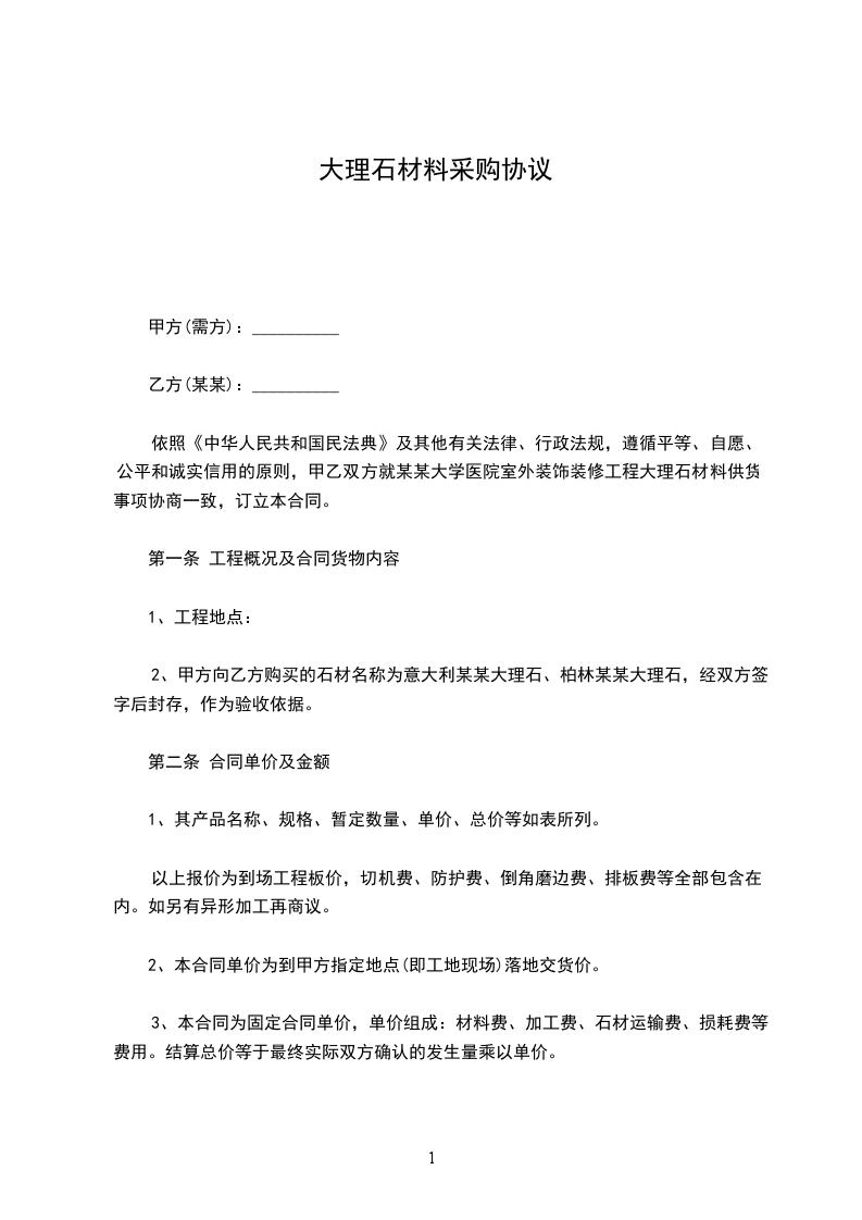 3、本合同为固定合同单价,单价组成:材料费、加工费、石材运输费、损耗费等费用。结算总价等于最终实际双方确认的发生量乘以单价。