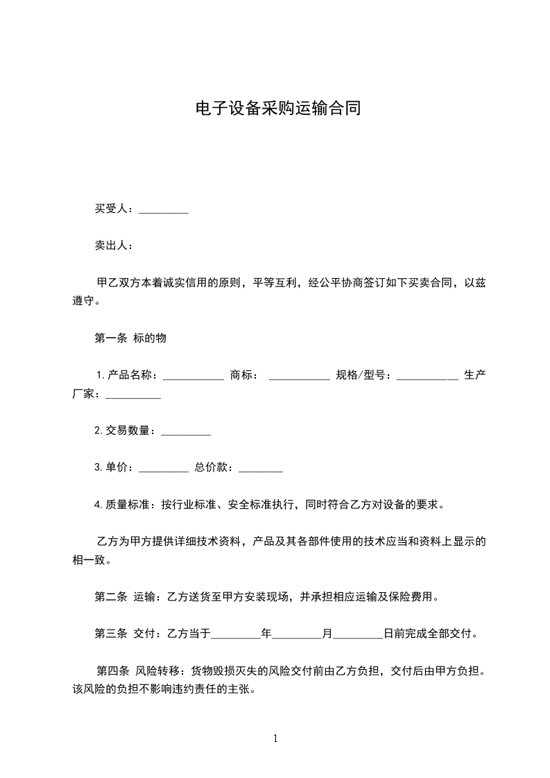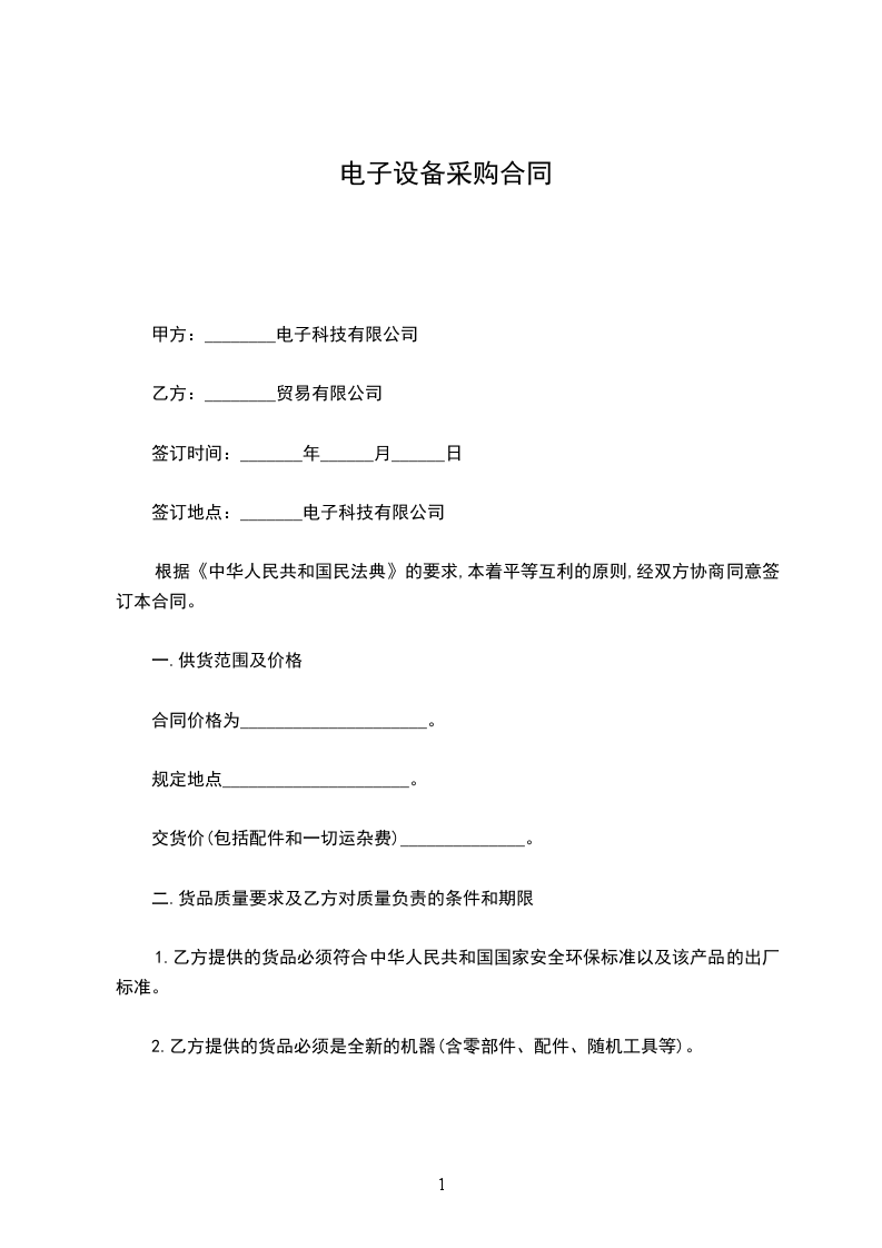 购货单位:______________ (以下简称甲方)
