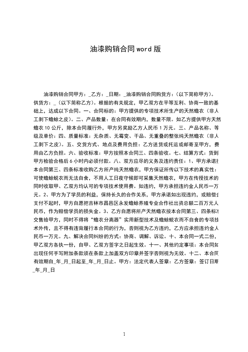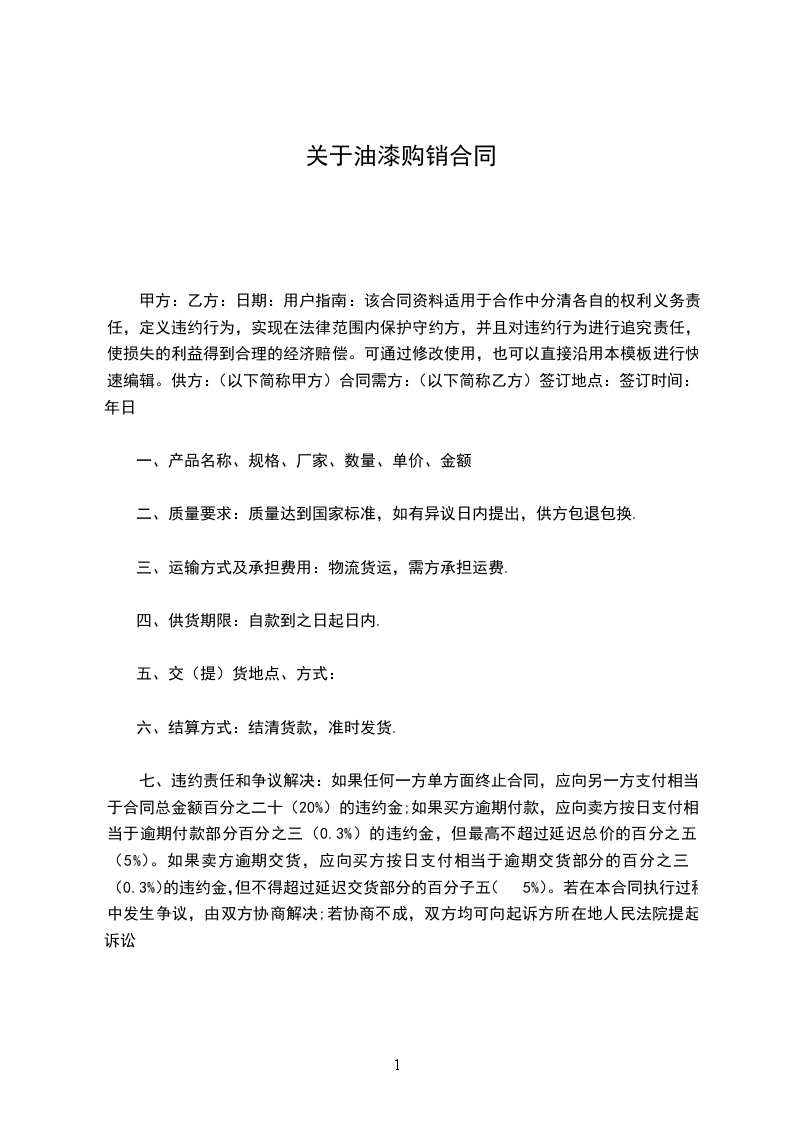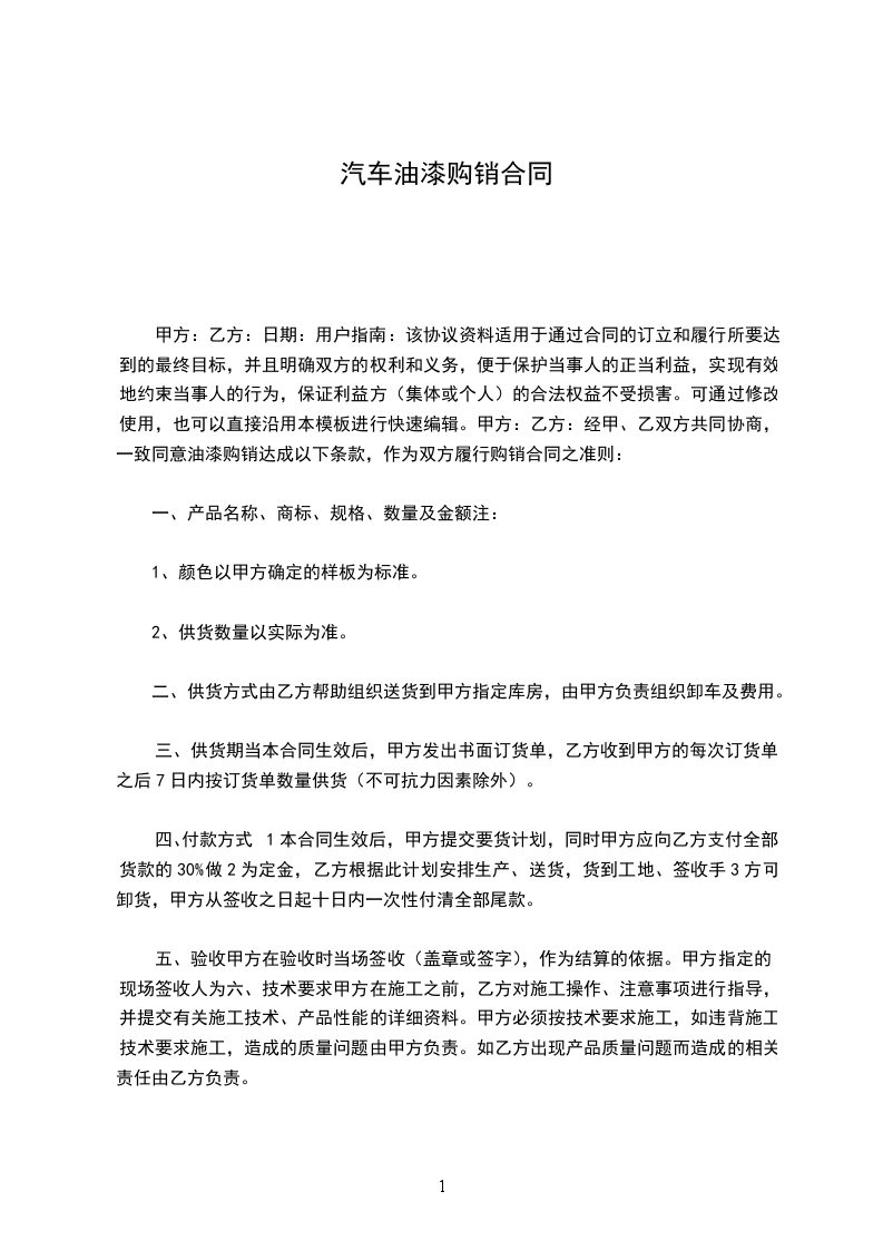 经甲、乙双方共同协商,一致同意油漆购销达成以下条款,作为双方履行购销合同之准则:
