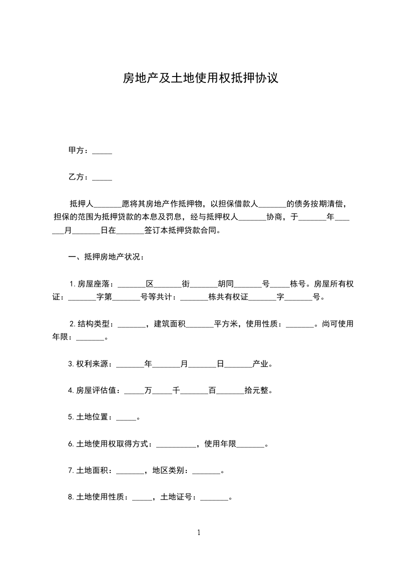 二、乙方同意用 的土地使用权做该笔借款的抵押,土地使用权证号为: ,使用权人为: 。双方在本协议签订之日起 日内办理完毕抵押登记手续,登记费用由 方承担。