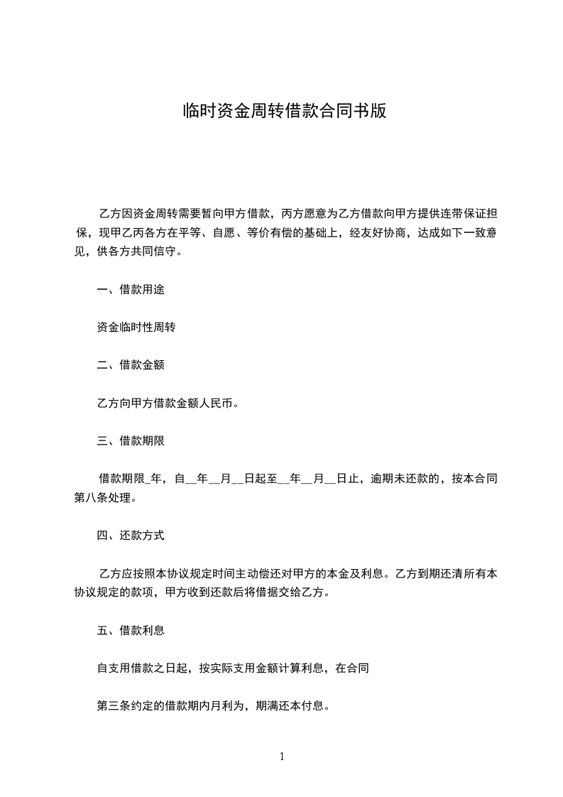乙方因临时资金周转,申请向甲方借款。甲、乙双方友好协商,就乙方向甲方借款事宜达成如下内容,供双方信守执行。