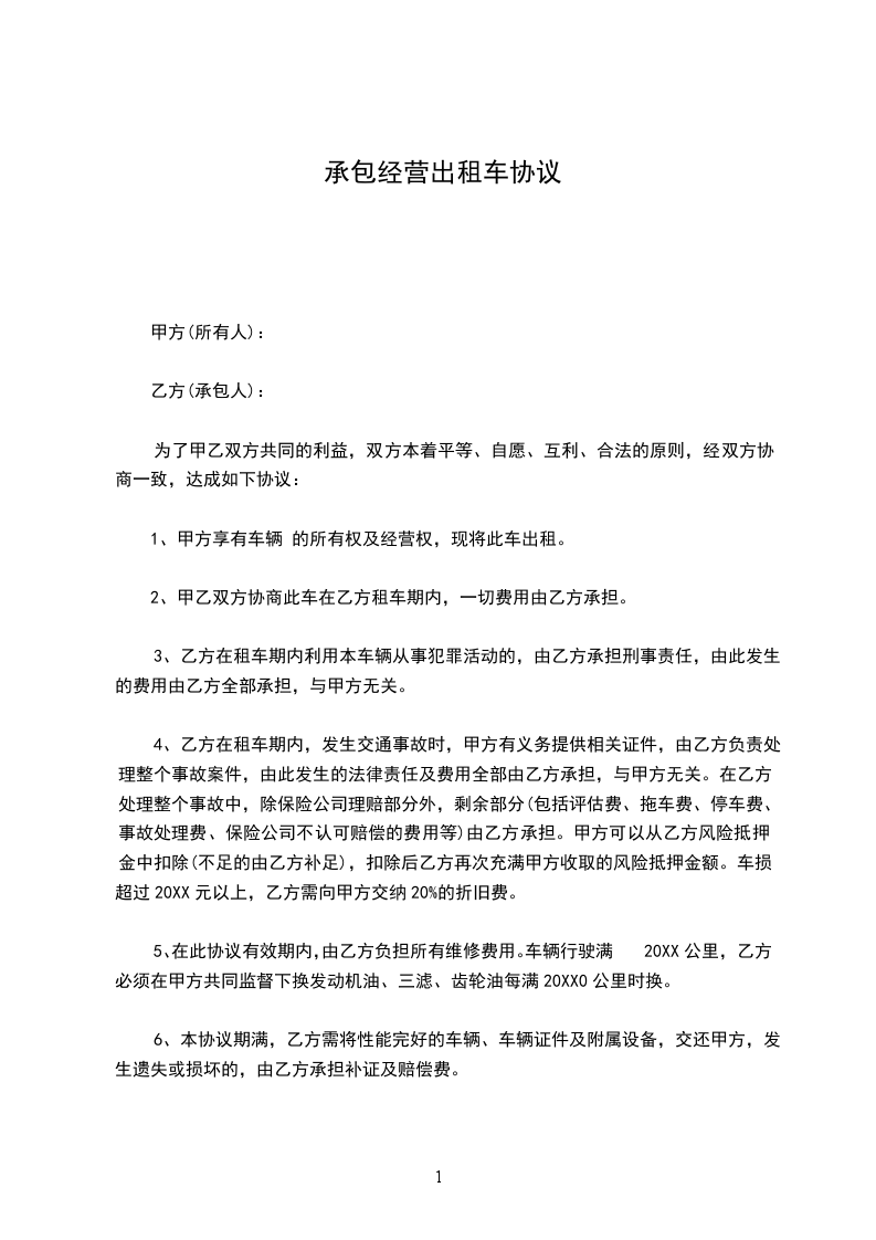 1、甲方享有车辆 的所有权及经营权,现将此车出租。