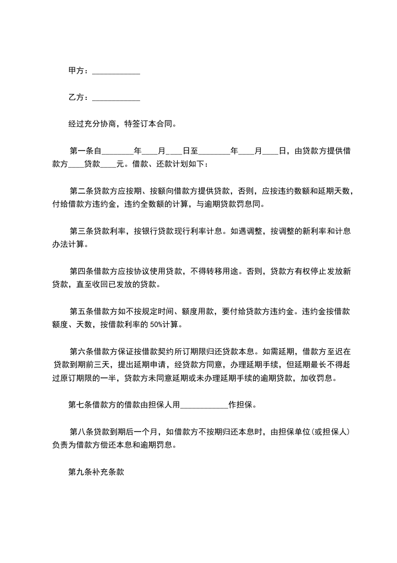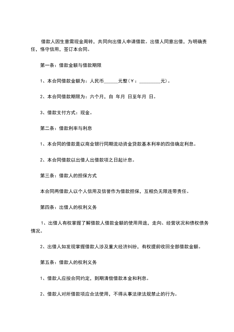 2、本合同借款期限为:六个月,自 年月 日至年月 日。