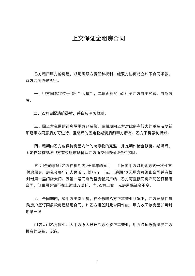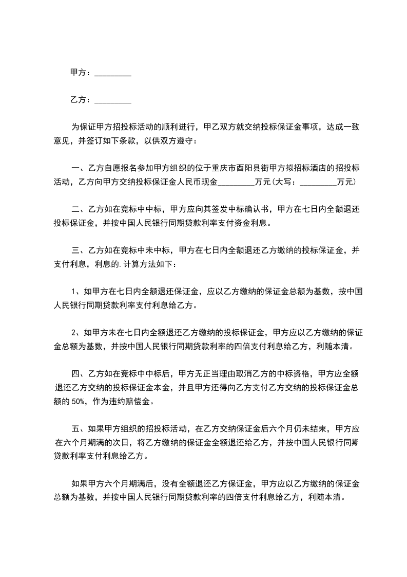 二、乙方支付甲方合同保证定金万元。如甲方解除本合同,双倍返还定金;如乙方解除本合同,甲方不予退还定金。