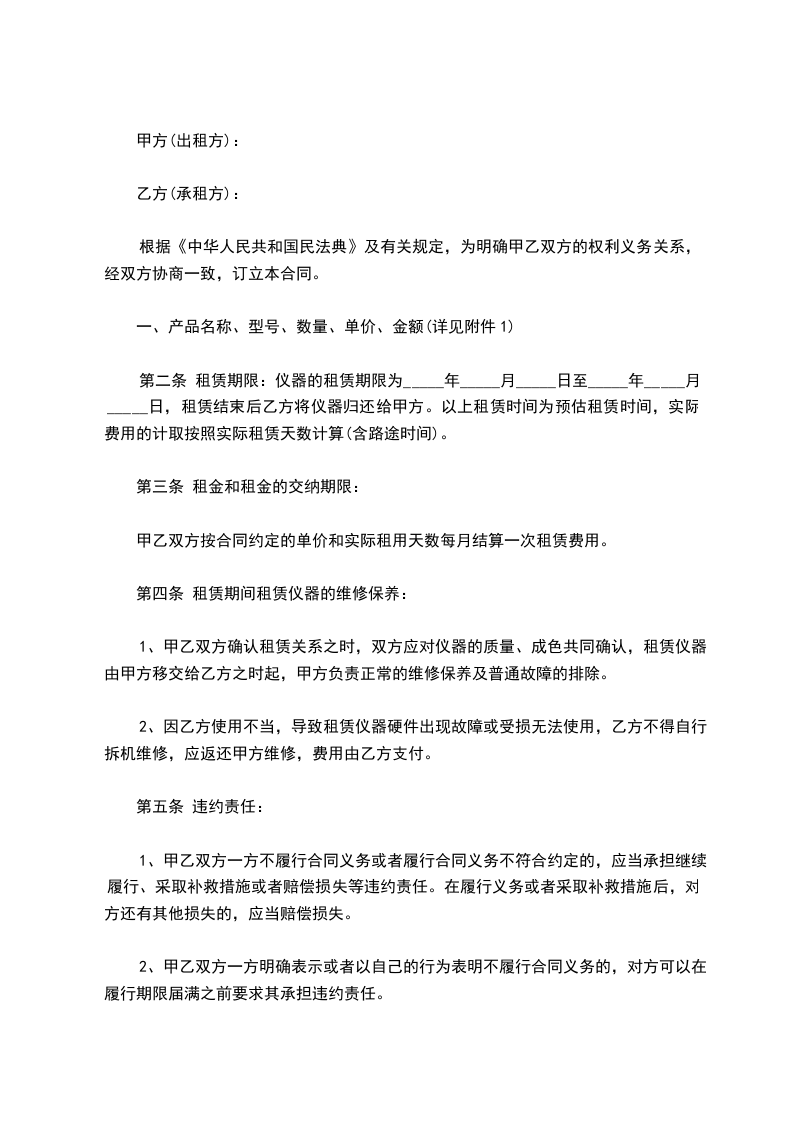 第二条 租赁期限:仪器的租赁期限为_____年_____月_____日至_____年_____月_____日,租赁结束后乙方将仪器归还给甲方。以上租赁时间为预估租赁时间,实际费用的计取按照实际租赁天数计算(含路途时间)。