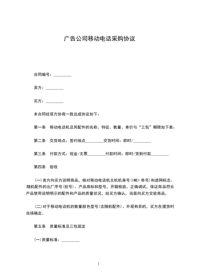 公司移动电话采购合同