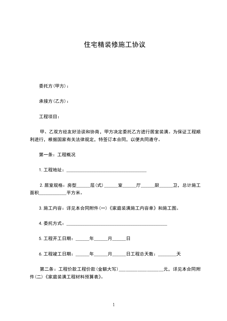 第二条:工程价款工程价款(金额大写)___________________元,详见本合同附件(二)《家庭装潢工程材料预算表》。