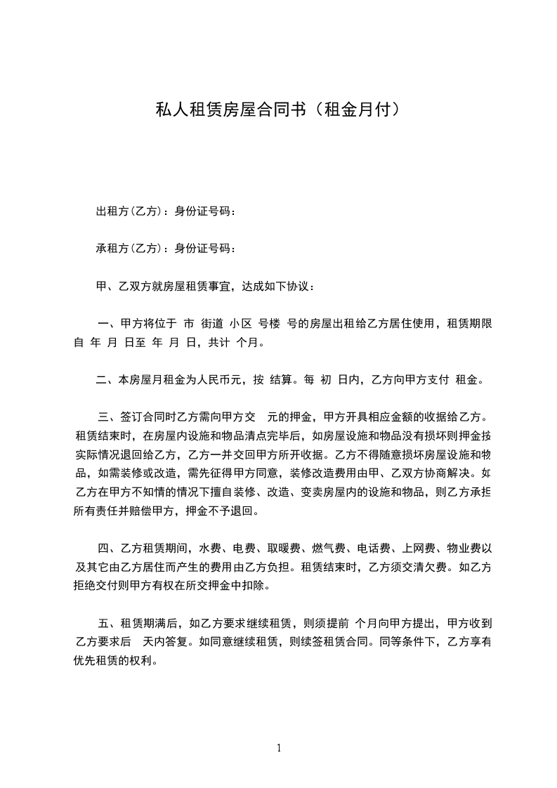 二、该房屋租金经双方商定为每月__________元。该房屋总租金为__________元。