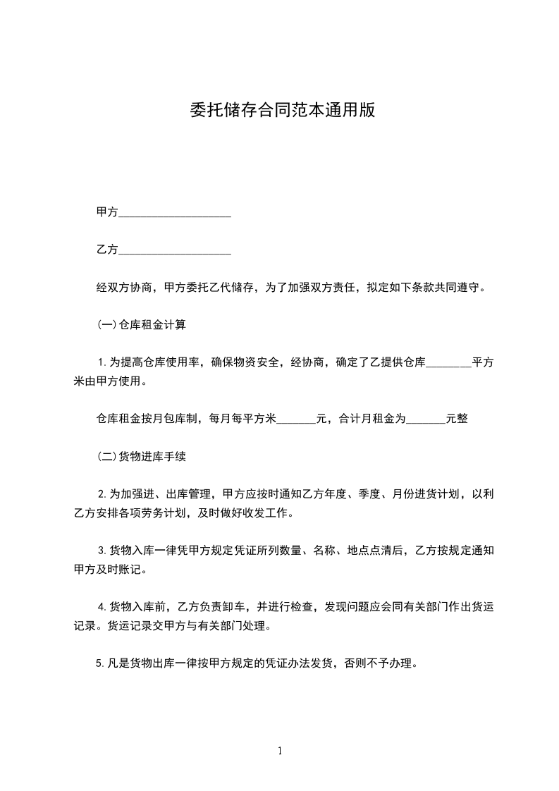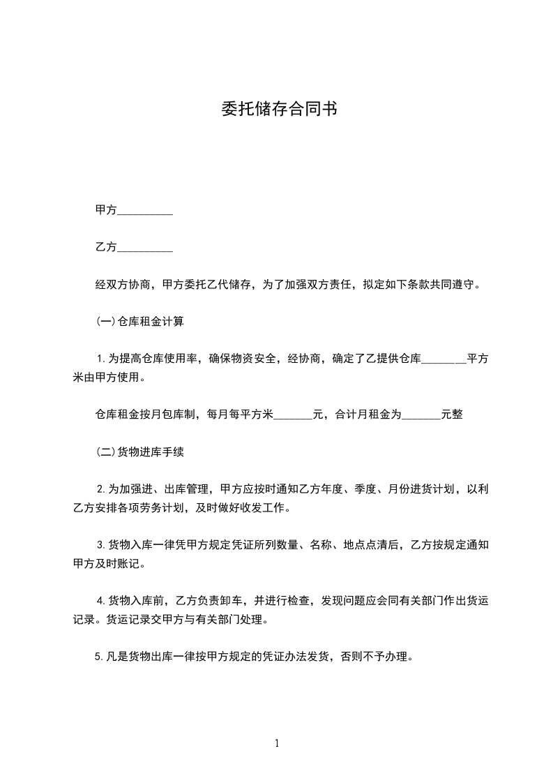 经双方协商,甲方委托乙代储存,为了加强双方责任,拟定如下条款共同遵守。