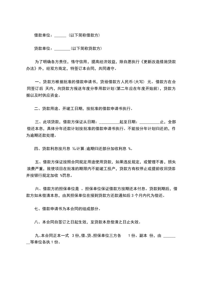 第二条:借款人于 年 月 日向贷款人借款,借款金额为 元(大写: )。