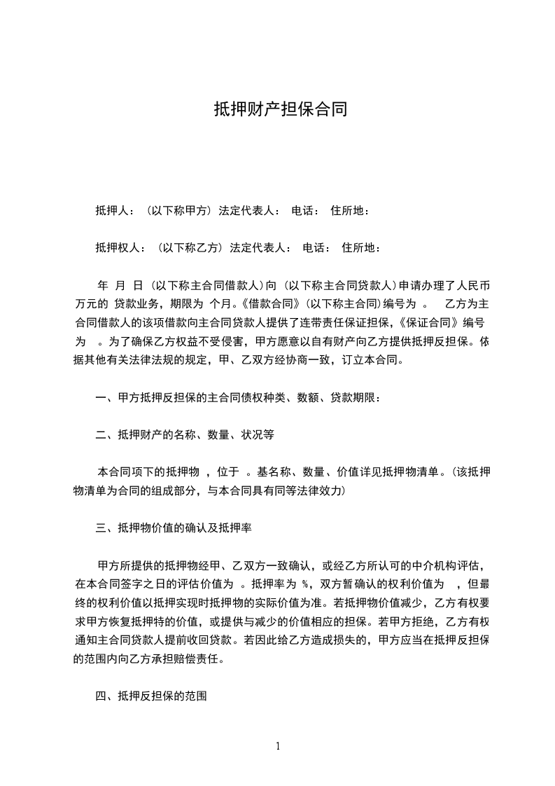 抵押人: (以下称甲方) 法定代表人: 电话: 住所地:
