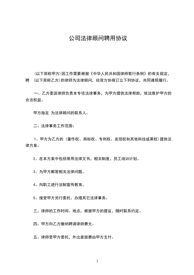 (1)就甲方涉及的法律问题提供咨询意见或进行指导,草拟、审查法律文书,维护甲方的合法权益;