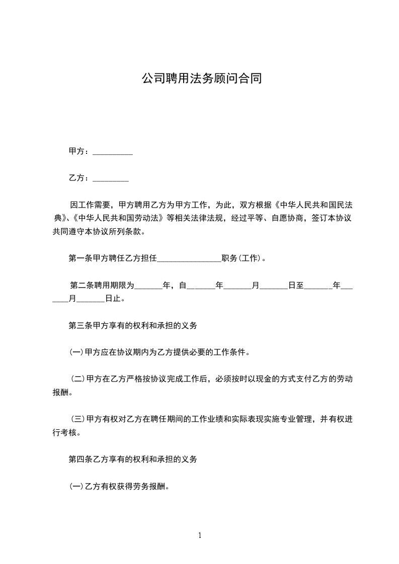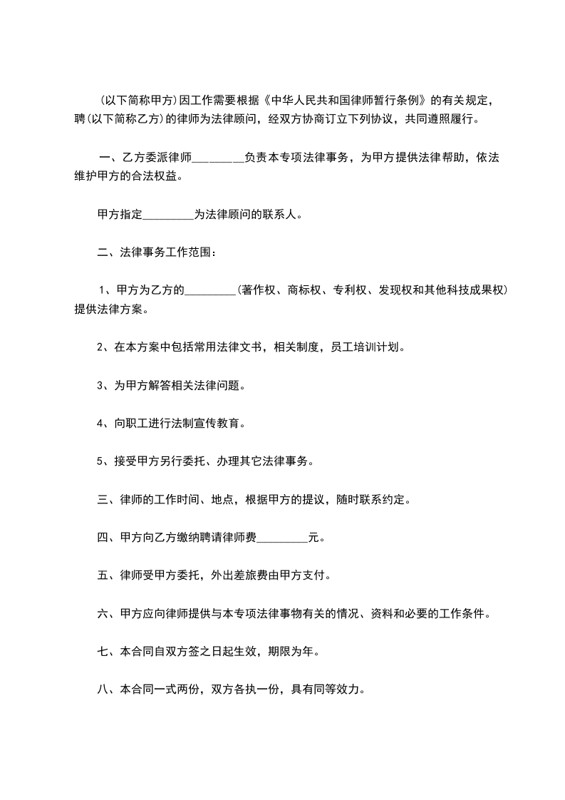 (1)双方商定乙方为甲方提供常年法律顾问服务的期限为_________年,自_________年_________月_________日起至_________年_________月_________日止。