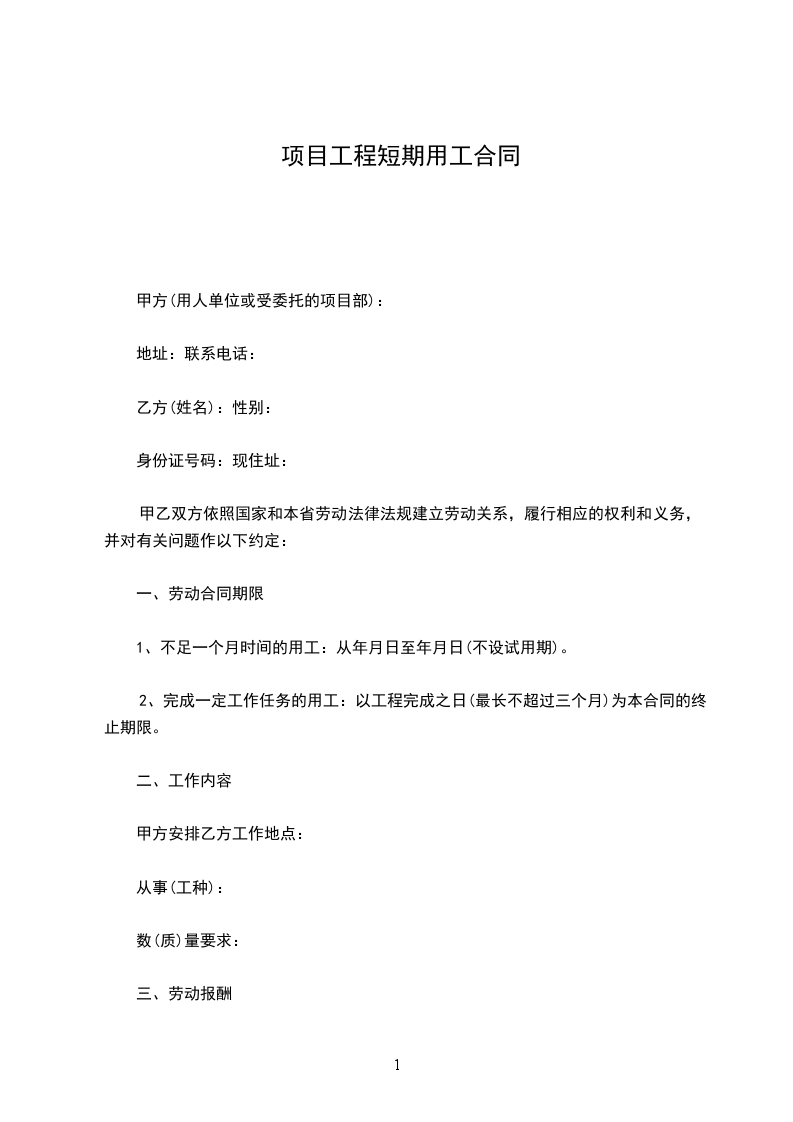 1、不足一个月时间的用工:从_____年_____月_____日至_____年_____月_____日(不设试用期)。