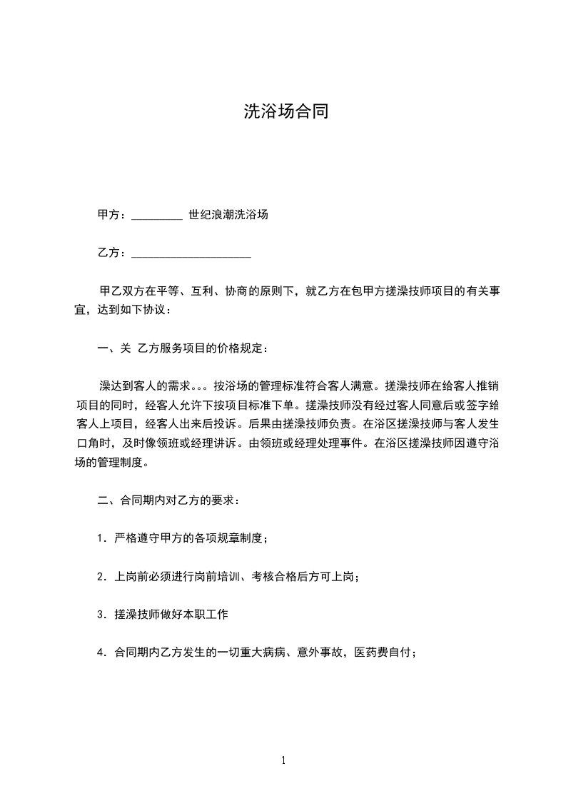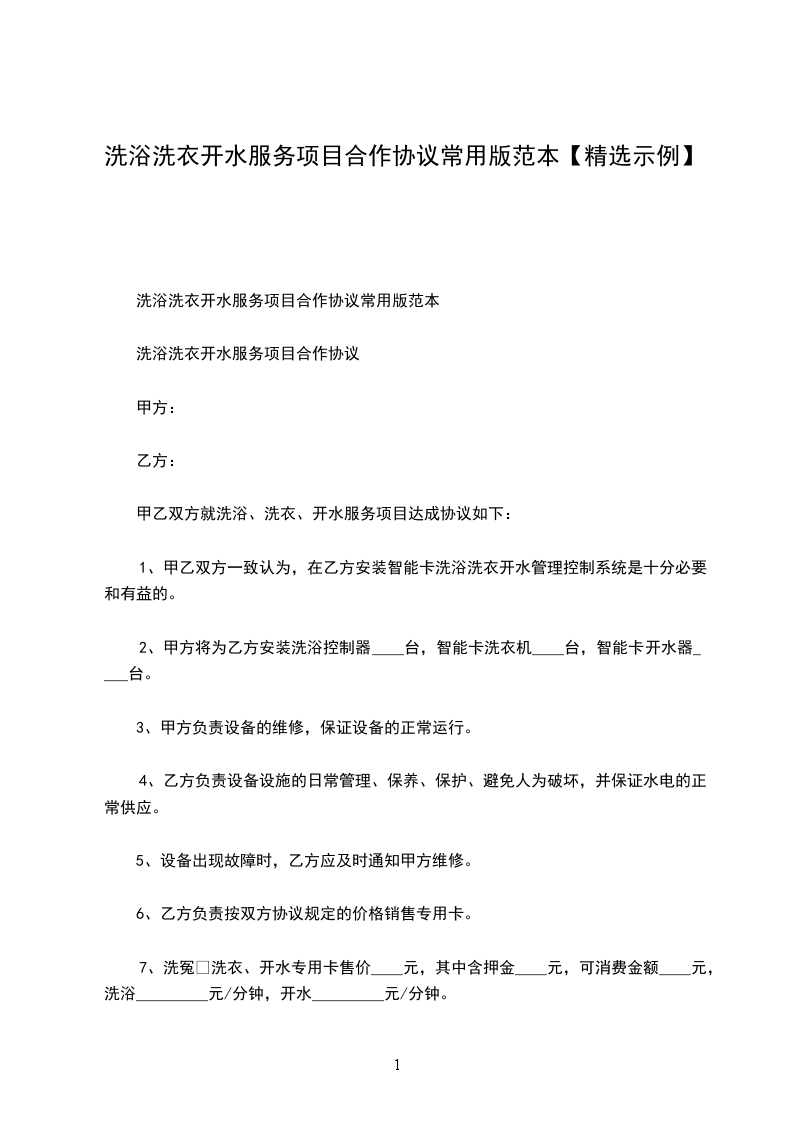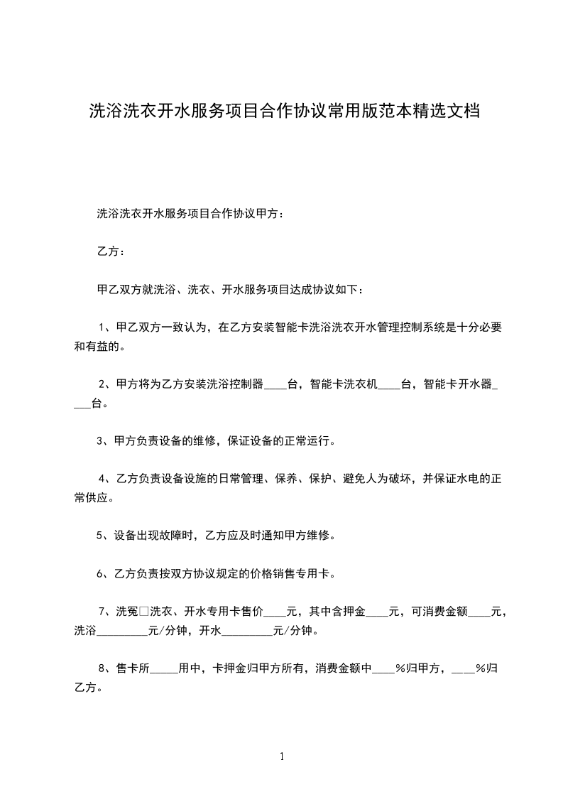 甲乙双方就洗浴、洗衣、开水服务项目达成协议如下: