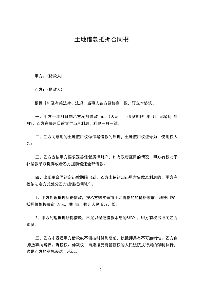 1、甲方处理抵押所得借款,按乙方购买每亩土地价格的的价格索取土地使用权,抵押价格按每亩 万元,共 亩,共计人民币_____万元整。