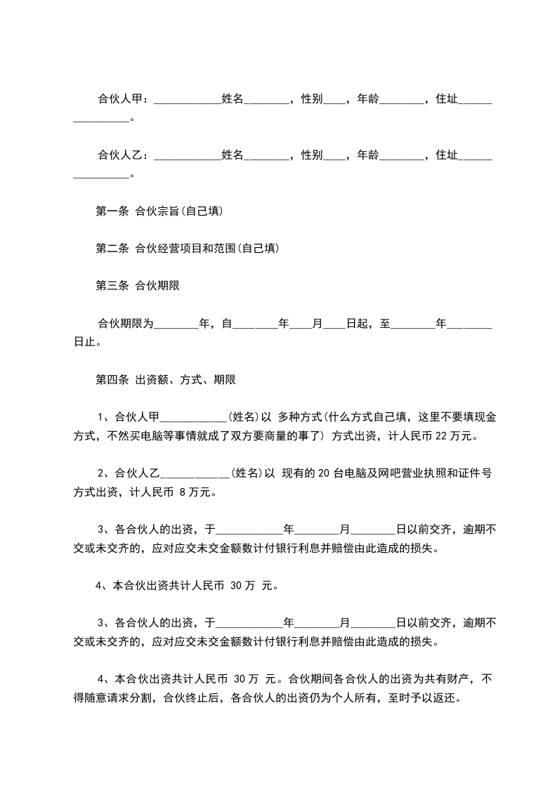 12、承包期内甲方不得将此网吧再次转包。