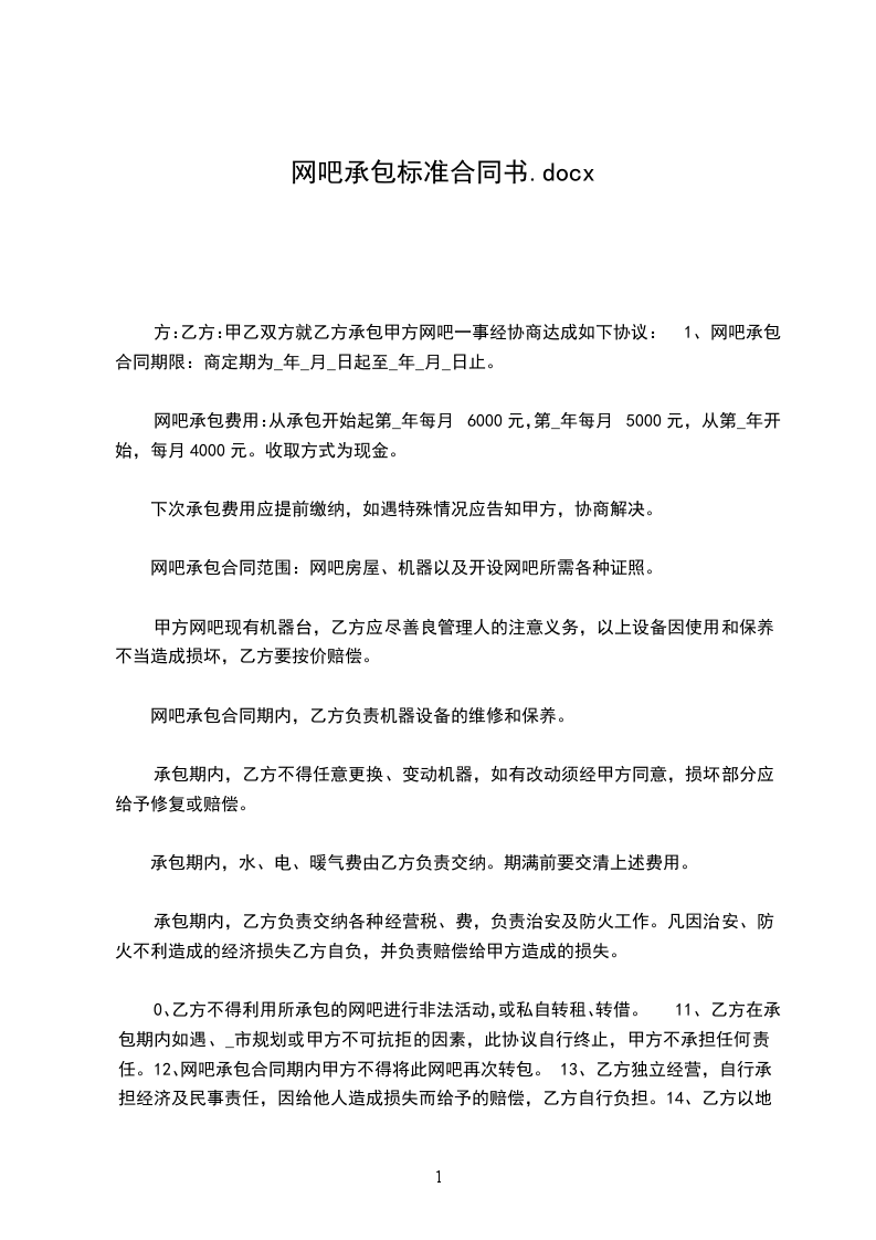 4、承包范围:网吧房屋、机器以及开设网吧所需各种证照。
