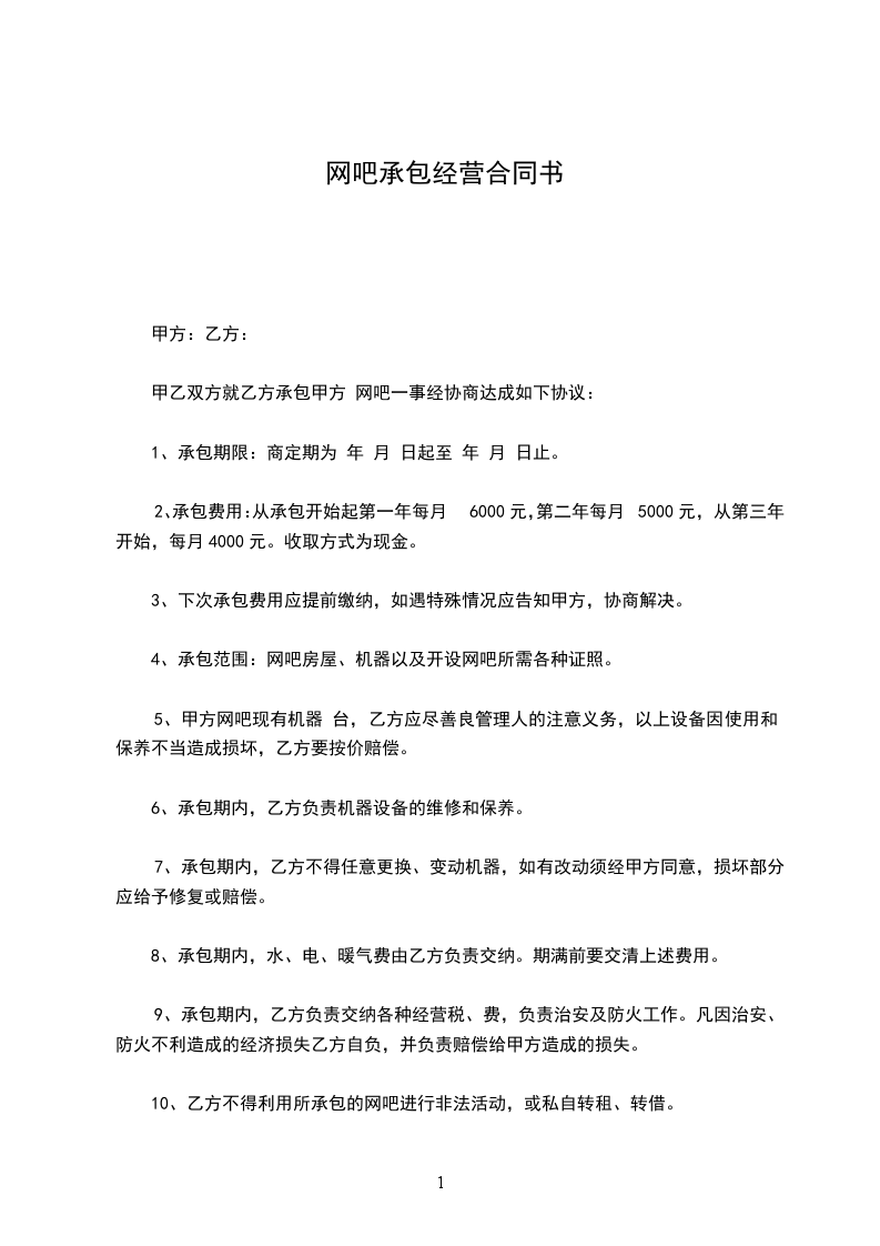 10、乙方不得利用所承包的网吧进行非法活动,或私自转租、转借。