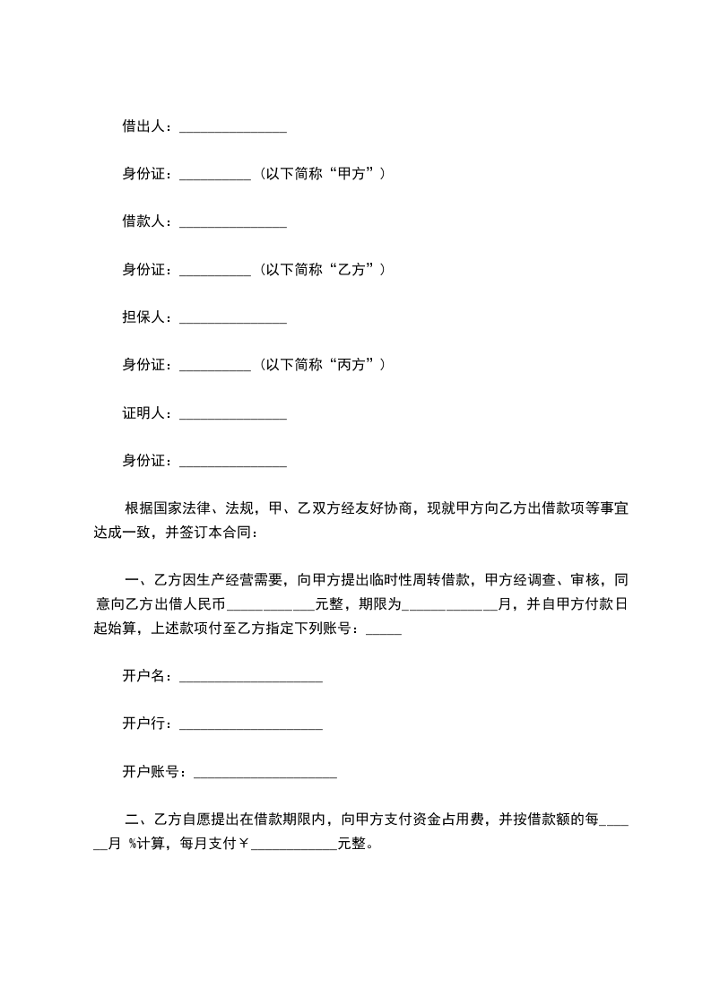 1、借款金额 元,金额大写 。