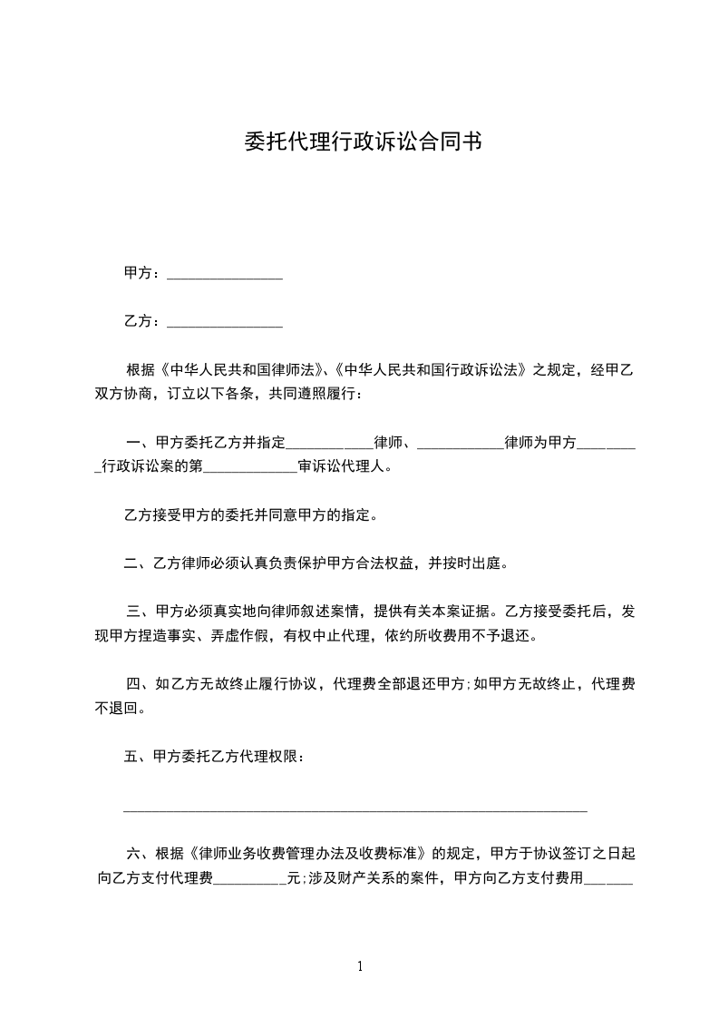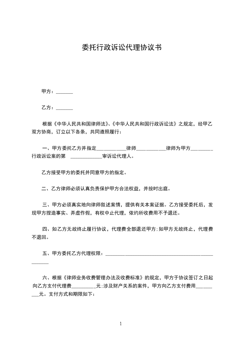一、甲方委托乙方并指定____________律师、____________律师为甲方_________行政诉讼案的第_____________审诉讼代理人。
