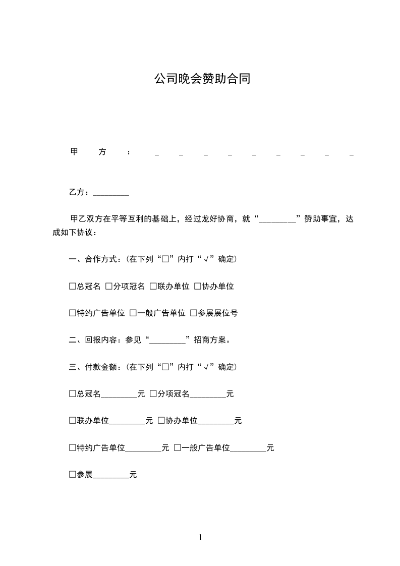甲乙双方在平等互利的基础上,经过龙好协商,就“_________”赞助事宜,达成如下协议: