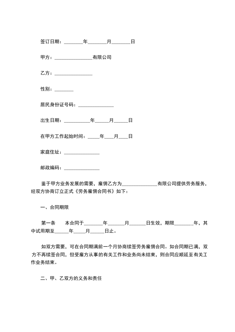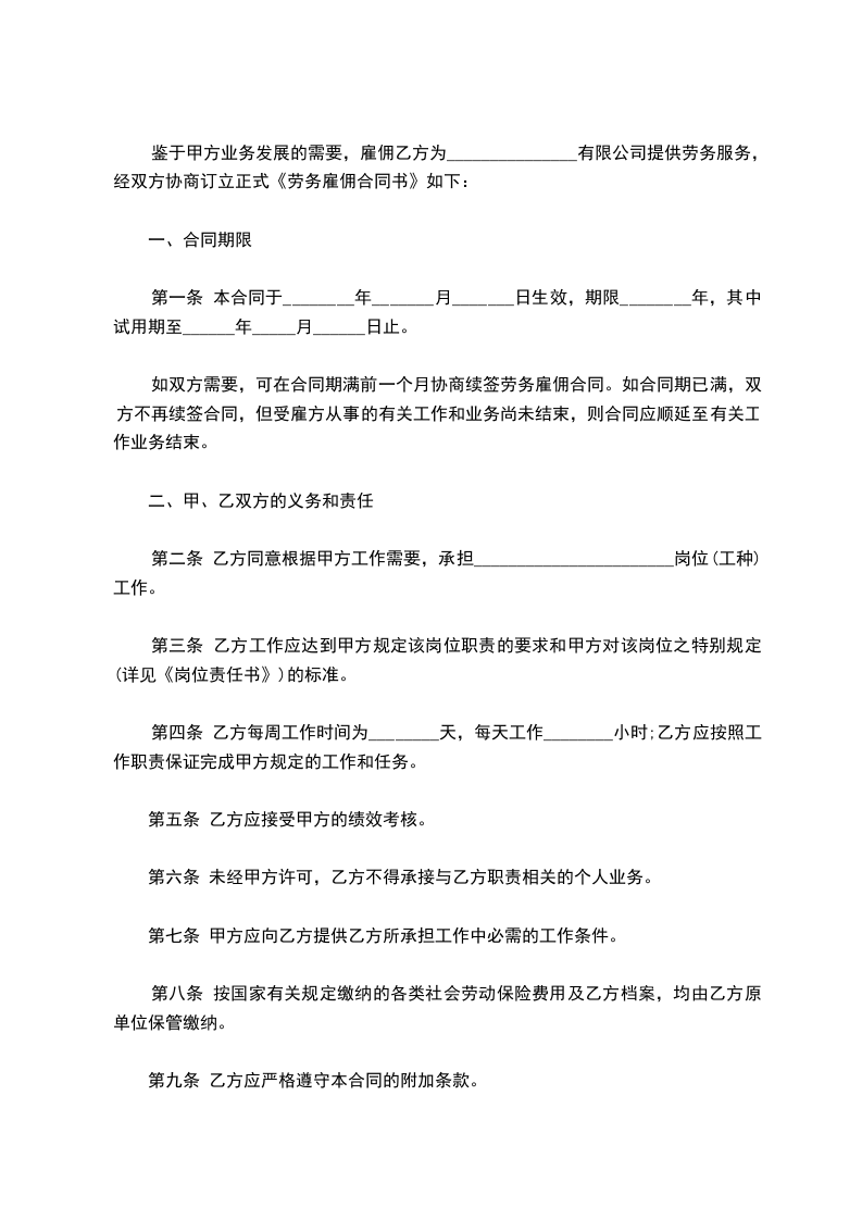 三、甲方聘用乙方的月薪为_____元(含养老、医疗、住房公积金)。试用期满后,并经考核合格,可根据平等协商的原则,签订正式劳动合同。