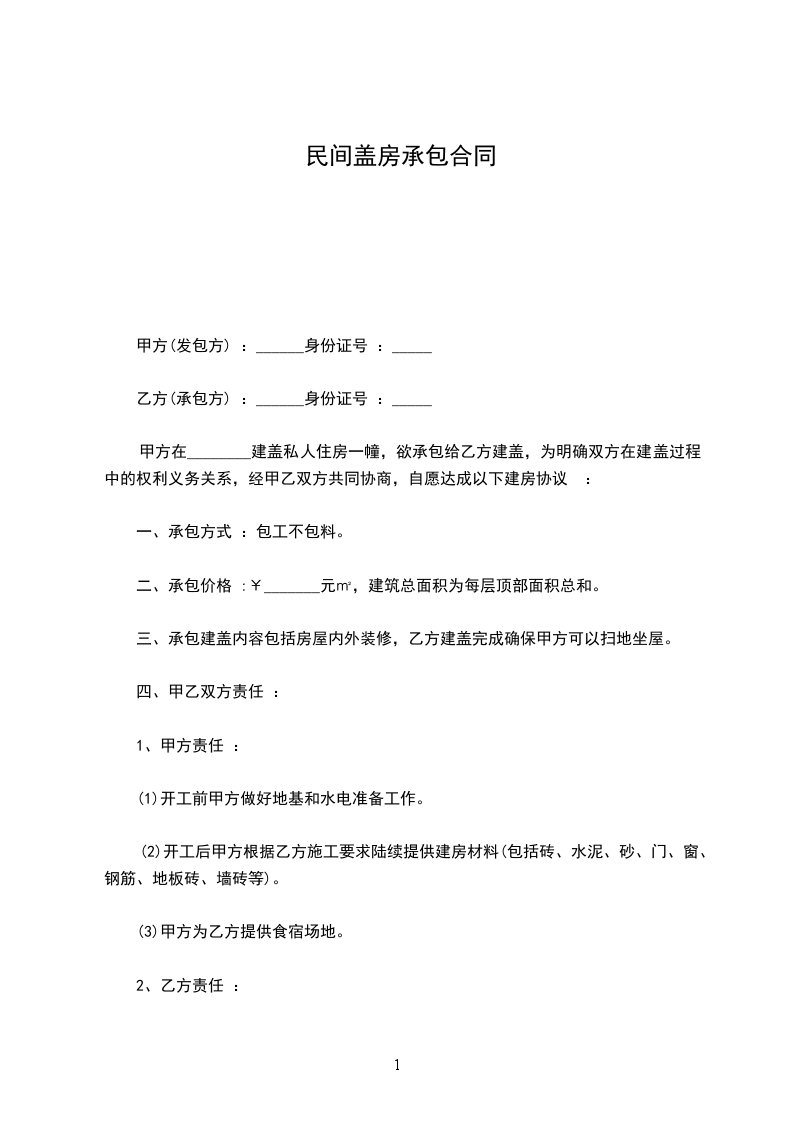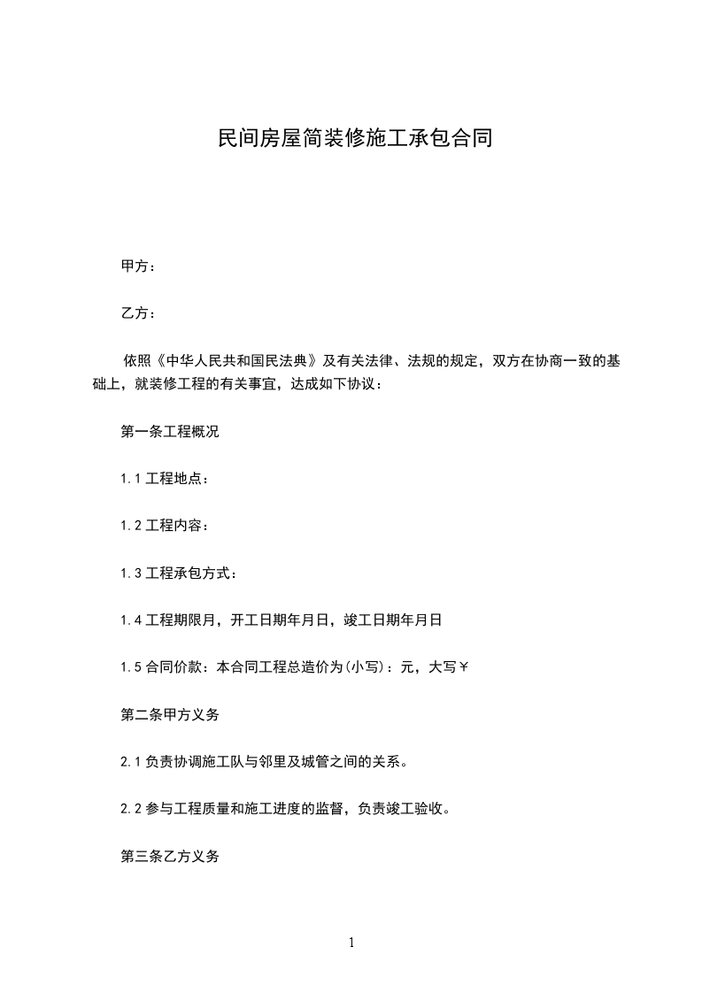 1.5合同价款:本合同工程总造价为(小写):元,大写¥