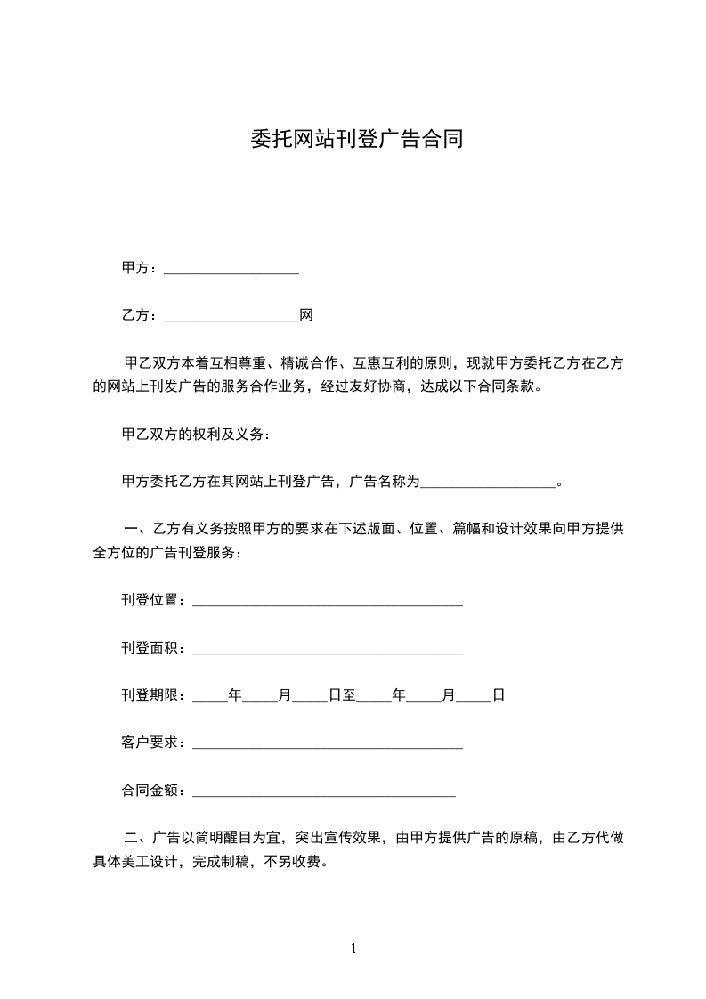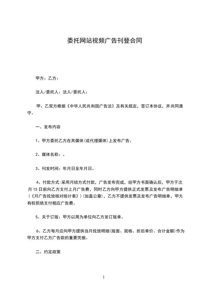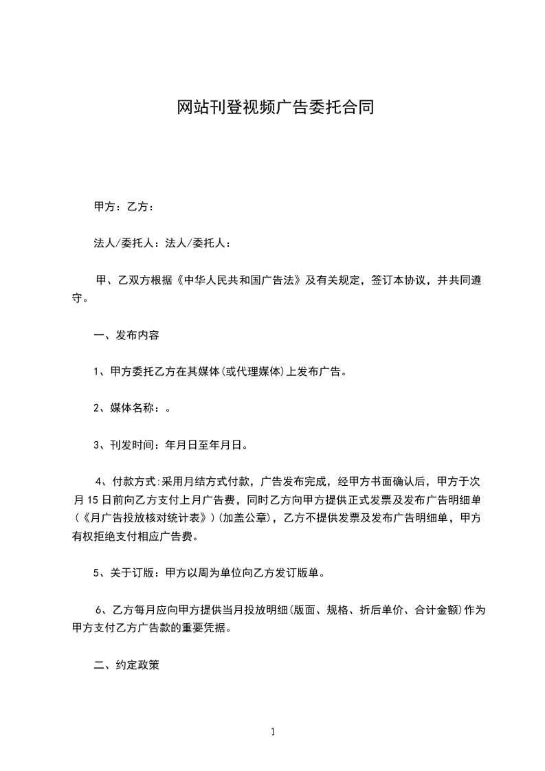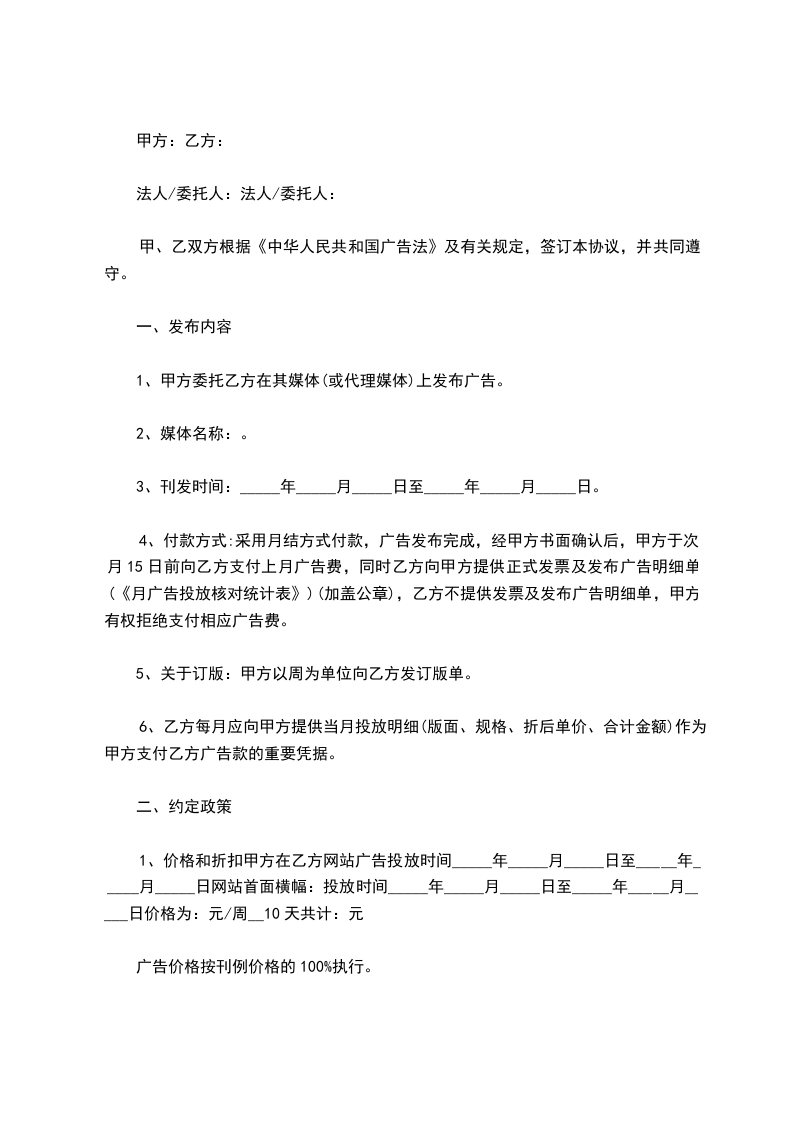 1、甲方委托乙方在其媒体(或代理媒体)上发布广告。