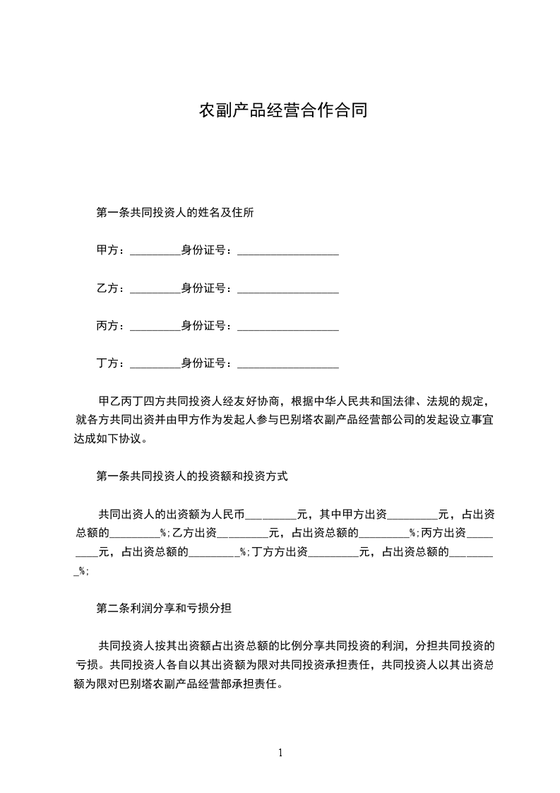经甲、乙双方协商洽谈,甲方本着面向市场、扩展市场,引进现代化广告经营理念之宗旨,将本公司农副产品收购方面业务由乙方承包经营。根据《民法典》等相关法律的要求,为明确双方的权利和义务,按照平等协商,互惠互利、职责明确等原则,经充分协商,达成如下条款: