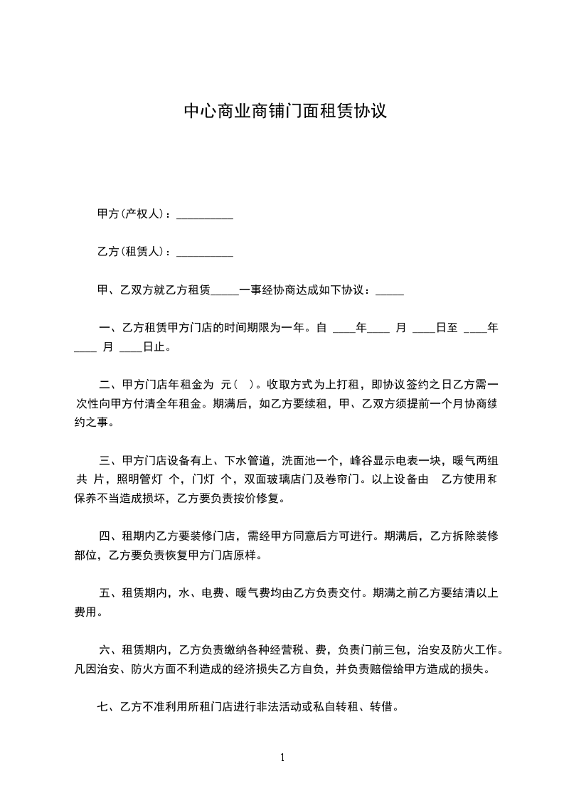 甲方商铺(以下简称该房屋)坐落于:商铺一间