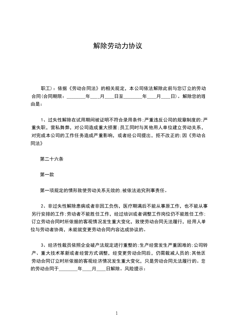 2、____________________________________;以上事宜完成后,按照公司离职规定办理离职手续。本劳动合同解公司:________年____月____日