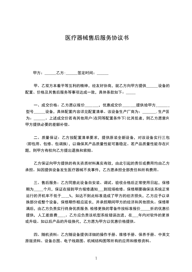 加强医疗器械的质量管理,维护消费者合法权益。明确产品质量责任,加强友好合作。为切实保证产品质量,维护企业形象,依据《医疗器械监督管理条例》、《医疗器械经营企业监督管理办法》、《产品质量法》等法律规定,甲乙双方本着平等、合作的原则签订如下产品质量保证协议。