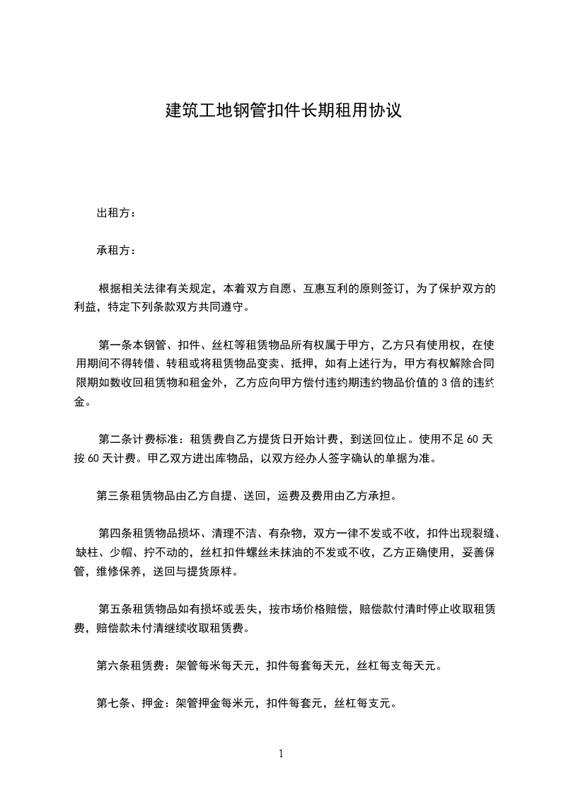 第七条、押金:架管押金每米元,扣件每套元,丝杠每支元。