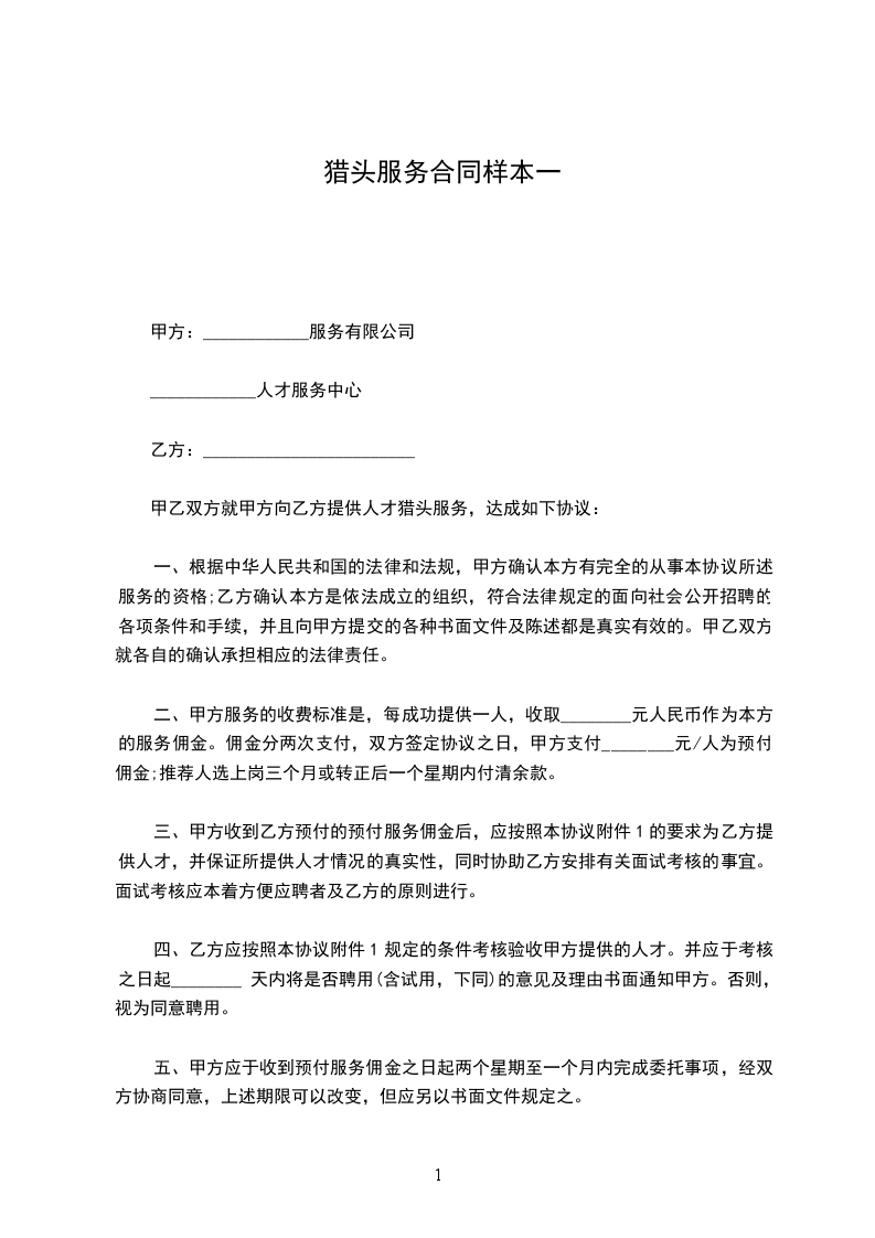 十、本协议在乙方委托寻猎的人数超过一人时,对每一个人才的服务分别有效,彼此无法律上的连带责任关系。