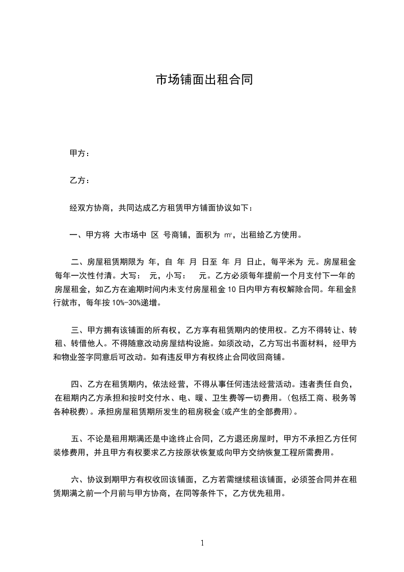 六、乙方不得损坏铺位内设施和装修,如有损坏,照价赔偿。