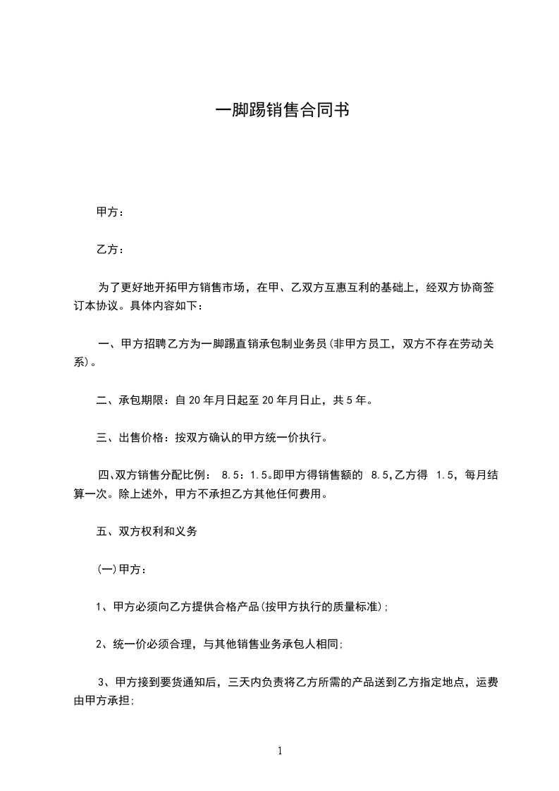 一、甲方招聘乙方为一脚踢直销承包制业务员(非甲方员工,双方不存在劳动关系)。
