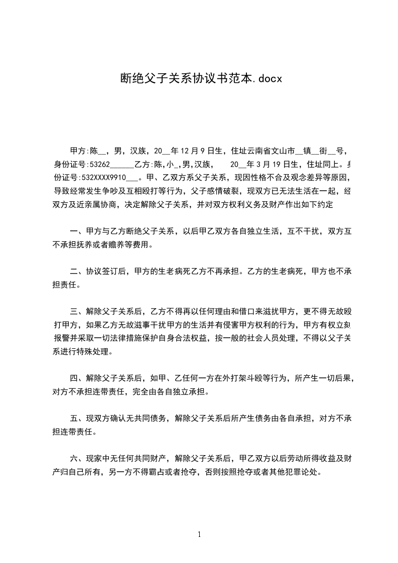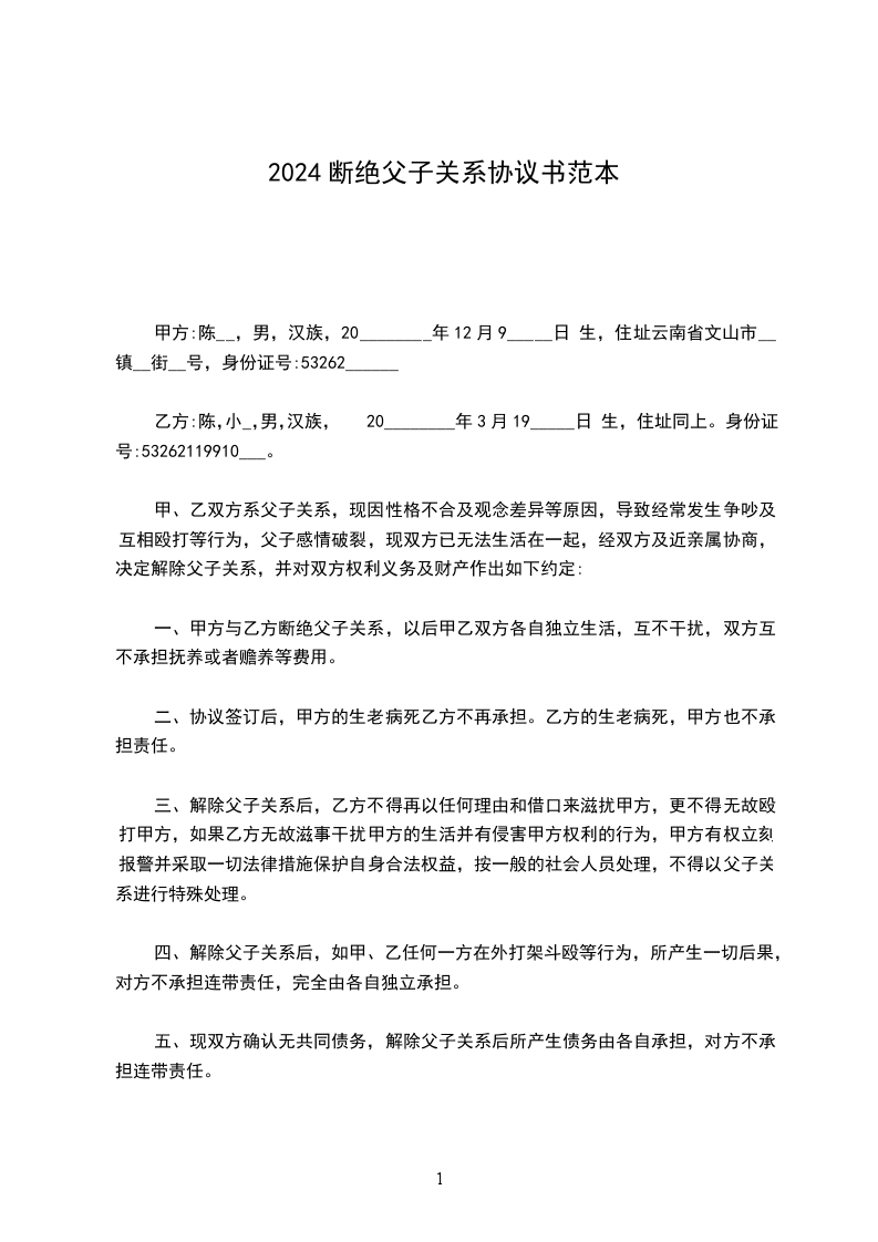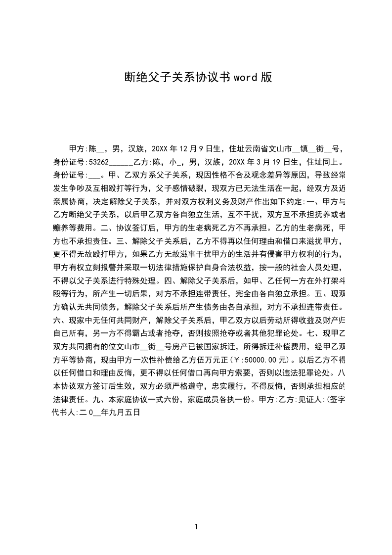 女方:_________,_________年_________月_________日出生,住_________。