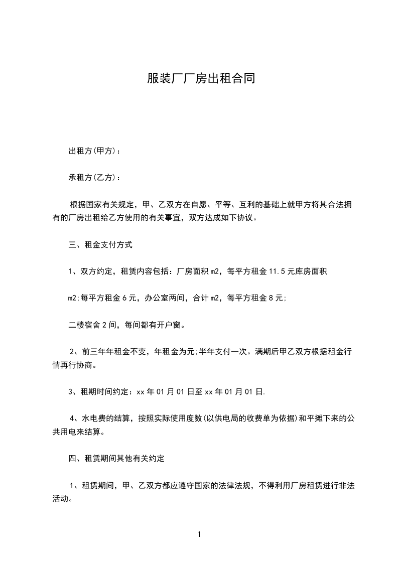 根据国家有关规定,甲、乙双方在自愿、平等、互利的基础上就甲方将其合法拥有的厂房出租给乙方使用的有关事宜,双方达成如下协议。