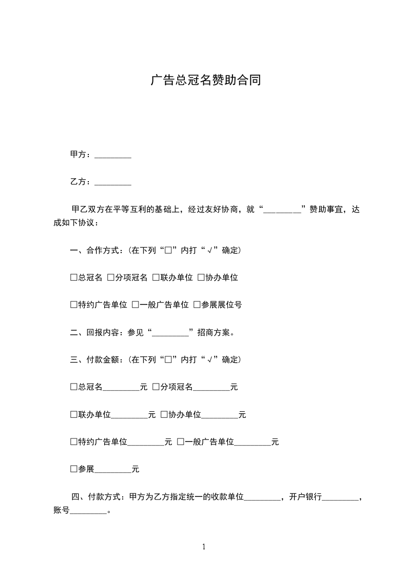 甲乙双方在平等互利的基础上,经过友好协商,就“_________”赞助事宜,达成如下协议: