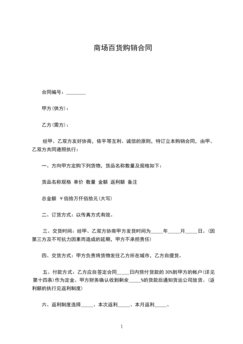五、付款方式:乙方应自签定合同_____日内预付货款的30%到甲方的账户(详见第十四条)作为定金。甲方财务确认收到剩余_____%的货款后通知货运公司放货。(返利额的执行见返利制度)