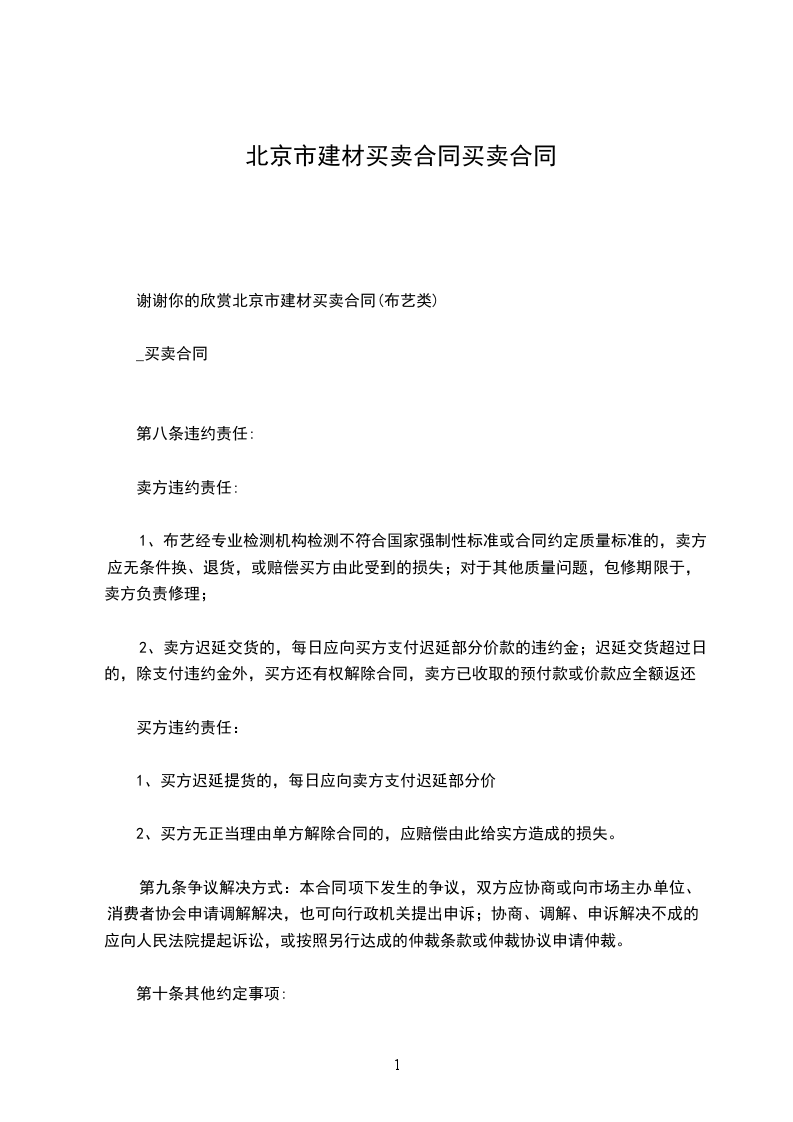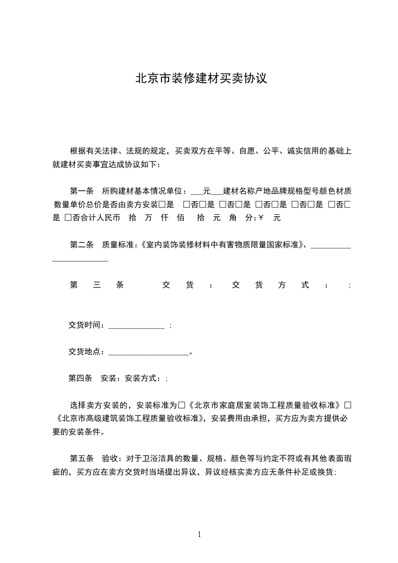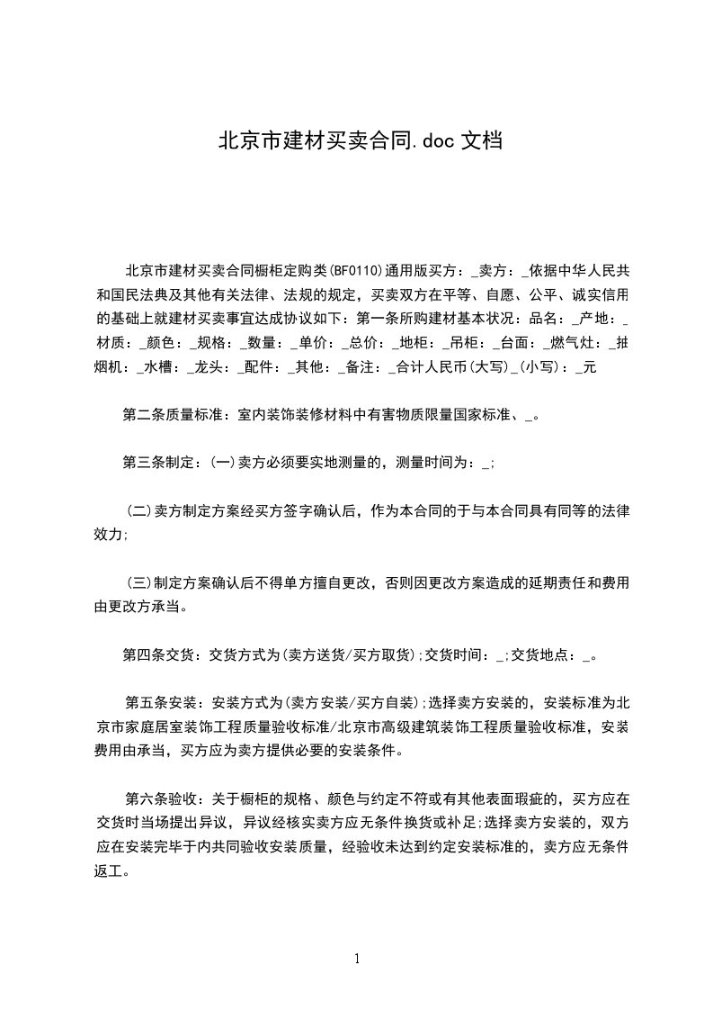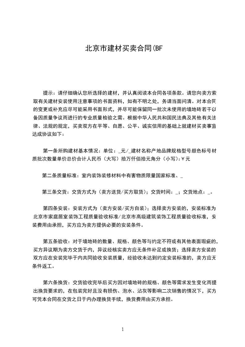 根据《中华人民共和国民法典》及其他有关法律、行政法规的规定,买卖双方在平等、自愿、公开、诚实信用的基础上就建材买卖事宜达成协议如下: